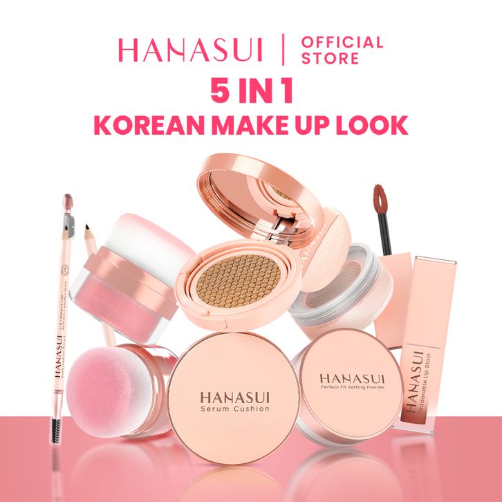 Hanasui 5in1 Korean Make Up Look (Cushion Soulmatte, Blush On, Lip Tint, Eyebrow, Setting Powder) (bdl)/Alat Kosmetik/