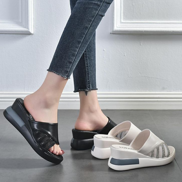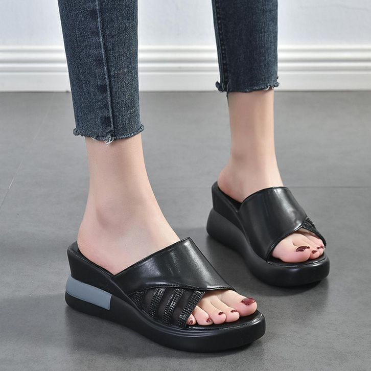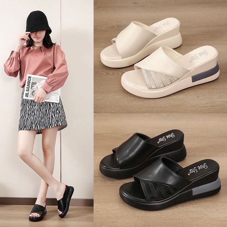 SANDAL WANITA KEKINIAN CASUAL TINGGI TERBARU PREMIUM SEPATU SANDAL CEWEK HITAM SLIDE HANGOUT KEREN SLIP ON SIMPLE
