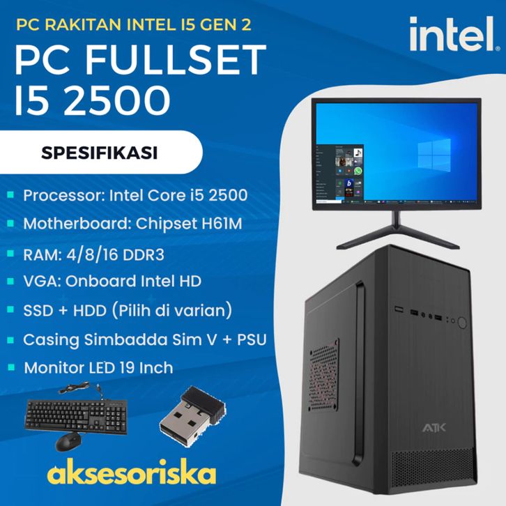 PAKET LENGKAP PC RAKITAN KOMPUTER KANTOR Intel Core i5 MONITOR LED 19" PC FULLSET Intel Core i5 2500