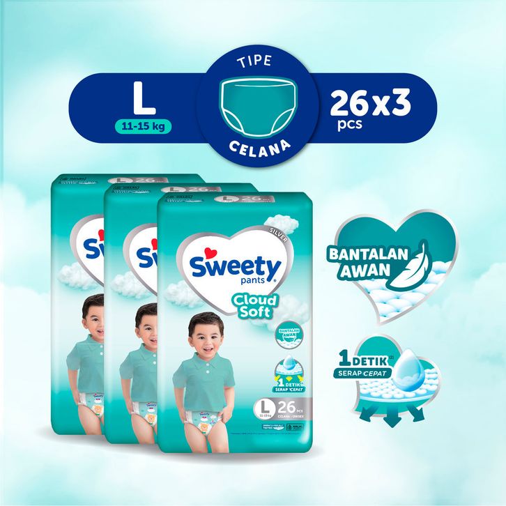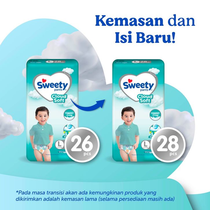 TANPA DP Sweety Silver Pants Cloud Soft L 3 x 28s Popok Celana Baby Diapers TERLARIS