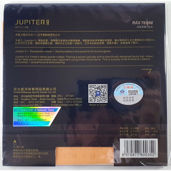 Yinhe Jupiter II H38 - Karet Bat Tenis Meja Yinhe Jupiter 2 H38 Forehand