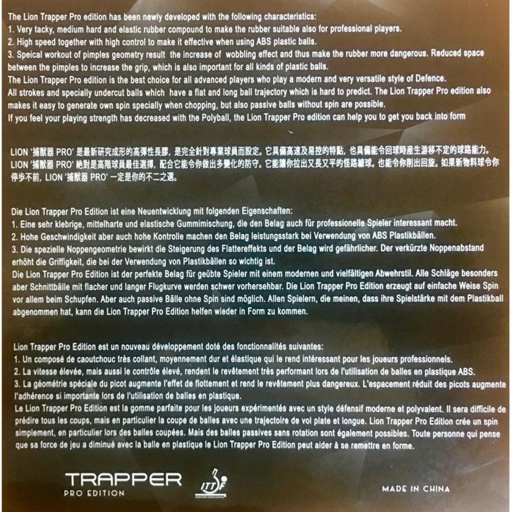 Karet Bat Tenis Meja Pingpong Lion Trapper Pro Edition OX - Hitam
