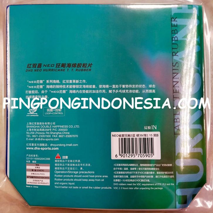 DHS HURRICANE 3 NEO PROV BLUE SPONGE - /Karet Pingpong Tenis Meja Bat Bet