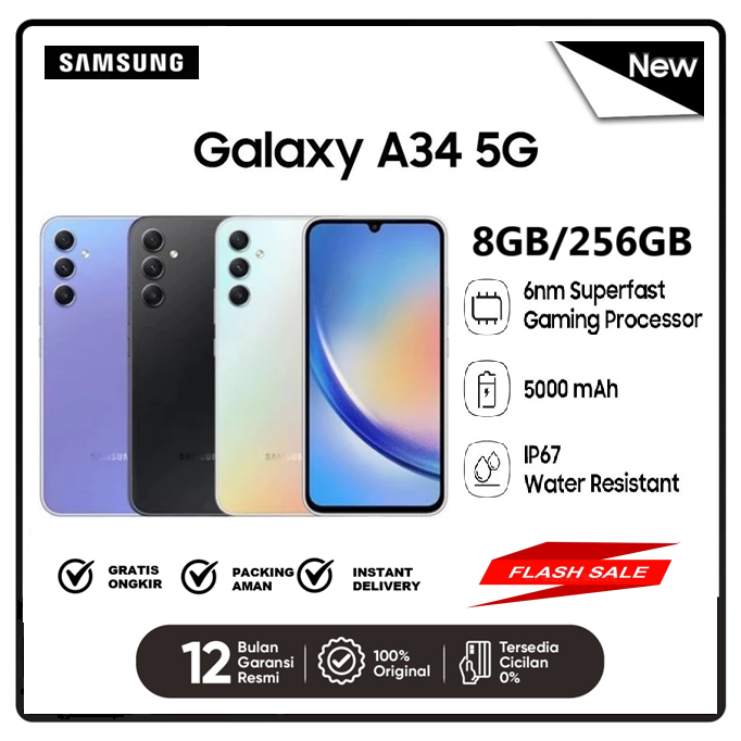 SAMSUNG GALAXY A34 5G 8/256GB GARANSI RESMI NFC Dimensity 1080 Li-Po 5000 mAh Super AMOLED