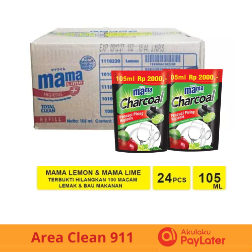 Sabun Cuci Piring Mama Lemon Charcoal 105 Ml 1 Dus Isi 24 Pcs