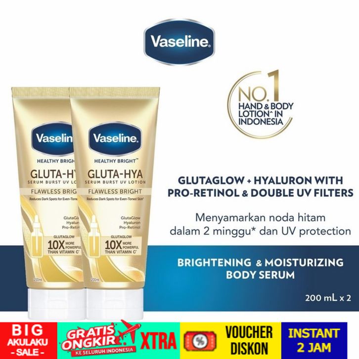 VASELINE Gluta-Hya Body Serum Flawless Bright 200 mL x2 TERLARIS
