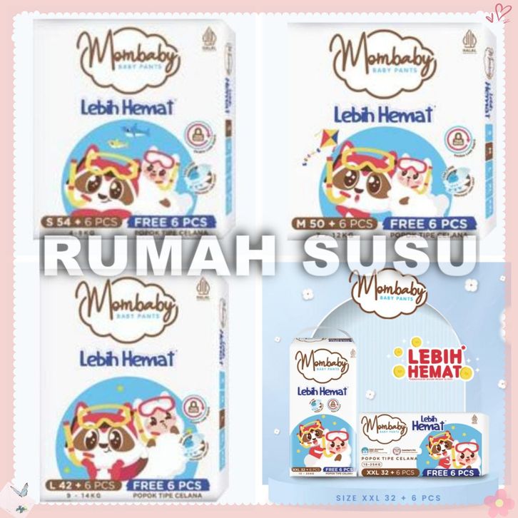 Promo Popok Pempres Bayi MOMBABY Pants Jumbo S54+6 M50+6 L42+6 / XL36+6 BERKUALITAS TERMURAH TERLARIS BEST SELLER