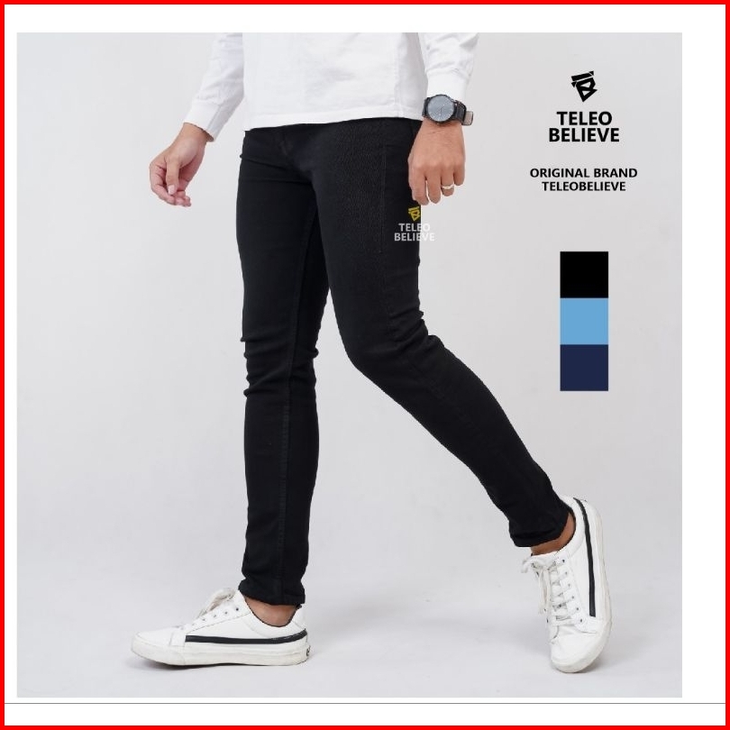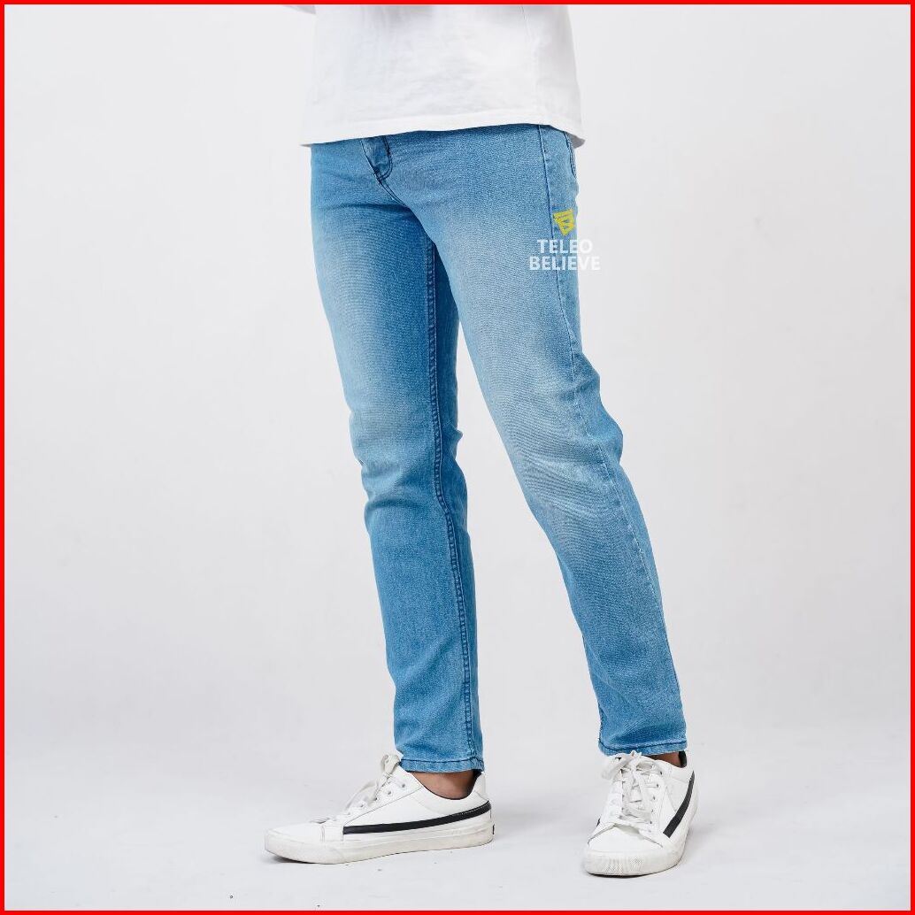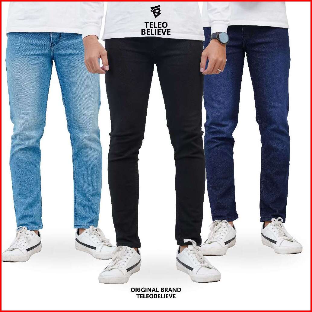 Celana Jeans Pria Panjang Skinny Slim Fit Panjang Melar Promo Awal Tahun Original Teleo Believe