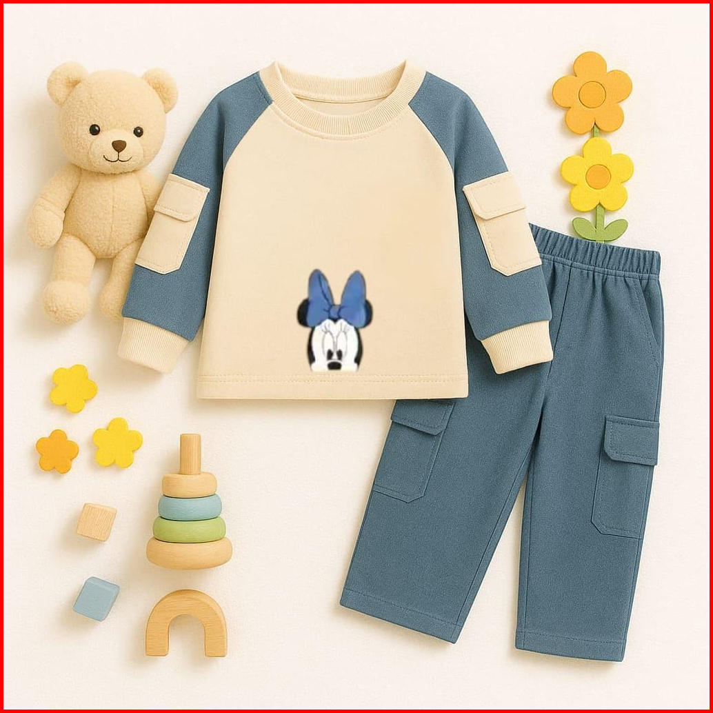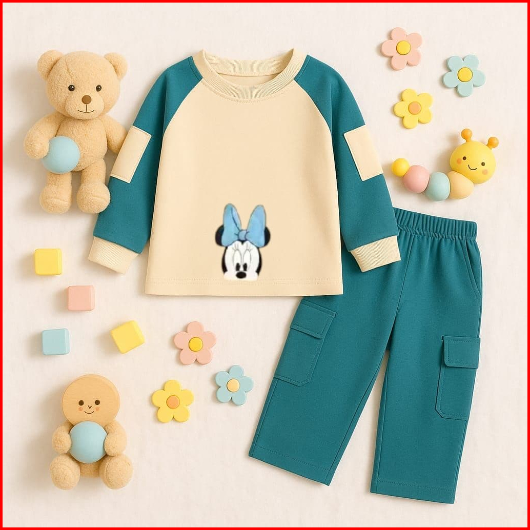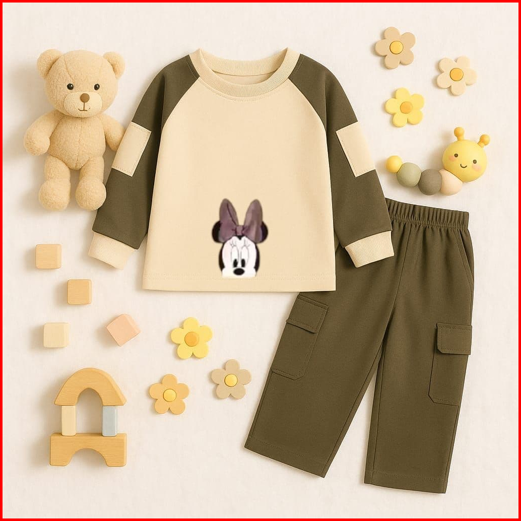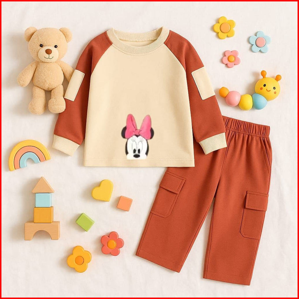 Setelan Anak Perempuan Oversize Celana Cargo Ada 2 Saku Aktif Di Bagian Lengan Bahan Baby Terry Usia 3-12 Tahun Motif Lu