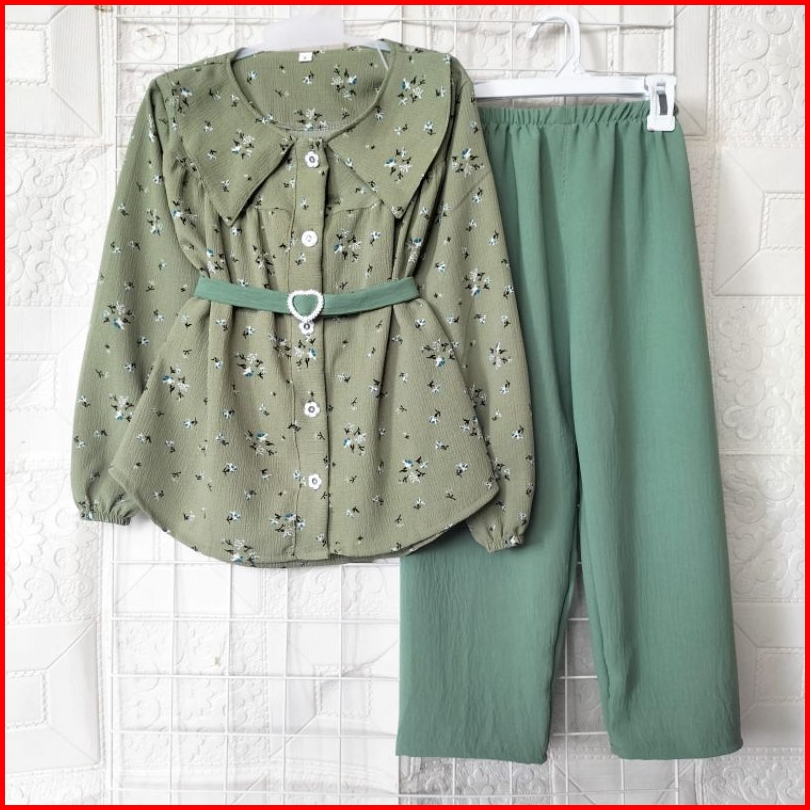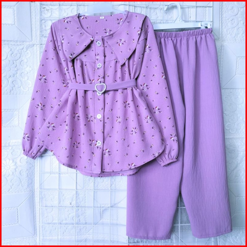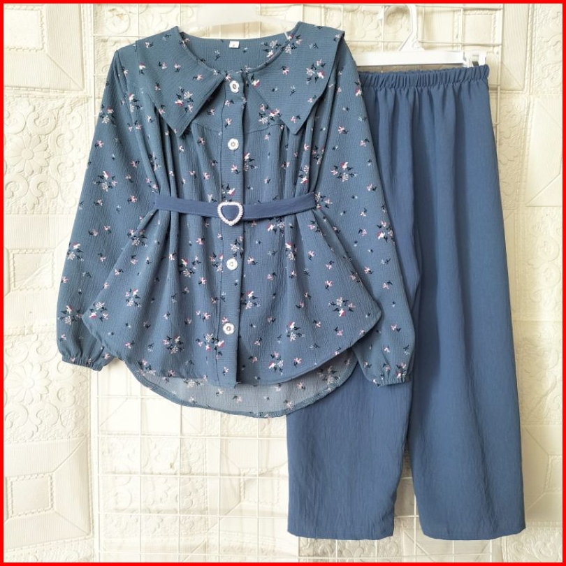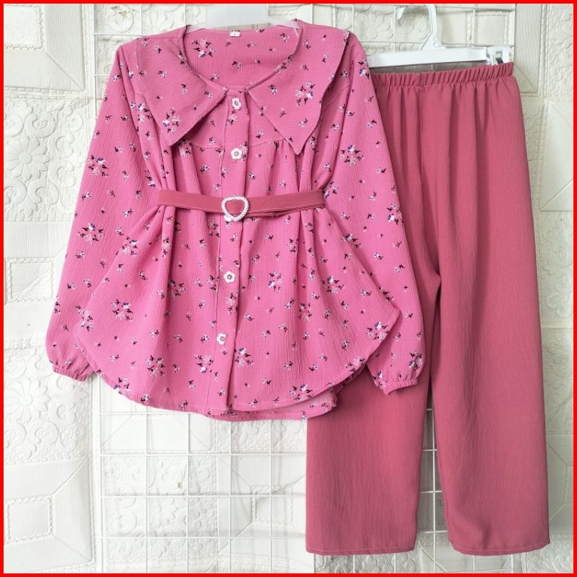 Setelan Anak Perempuan Bahan Crinkle Ratu Motif Bunga Kecil Model Milea
