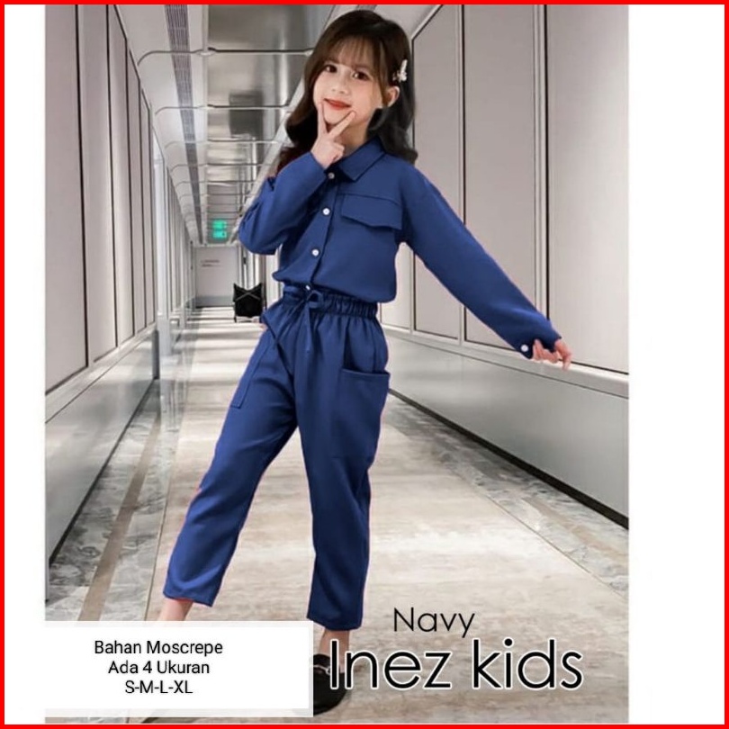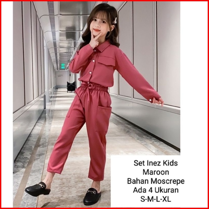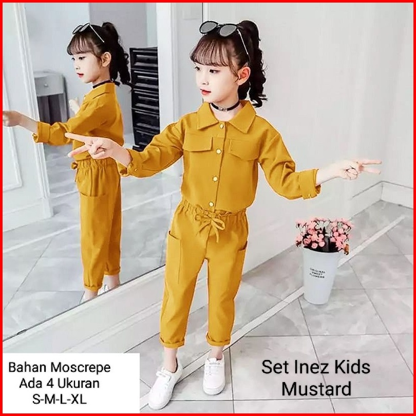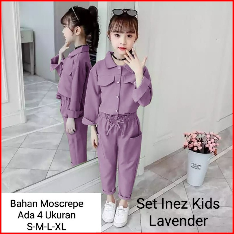 Stelan Kemeja Anak Perempuan Lengan Panjang Celana Panjang Set Inez Kids 3-11 Tahun Matt Moscrepe