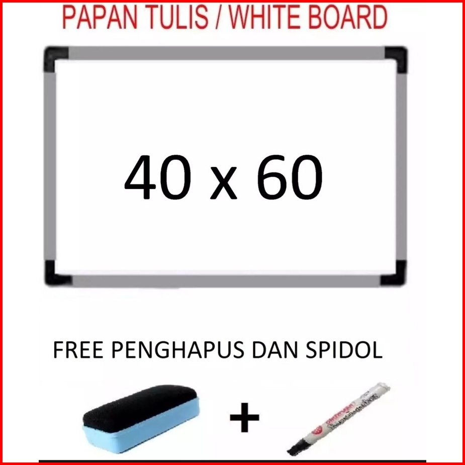 Papan Tulis Whiteboard 40x60 Gratis Spidol Dan Penghapus Bingkai Aluminium