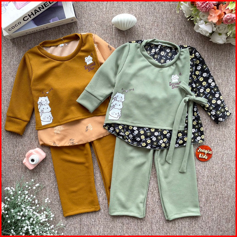 Setelan Anak Perempuan Ervina Wafel Knit 1-5 Tahun