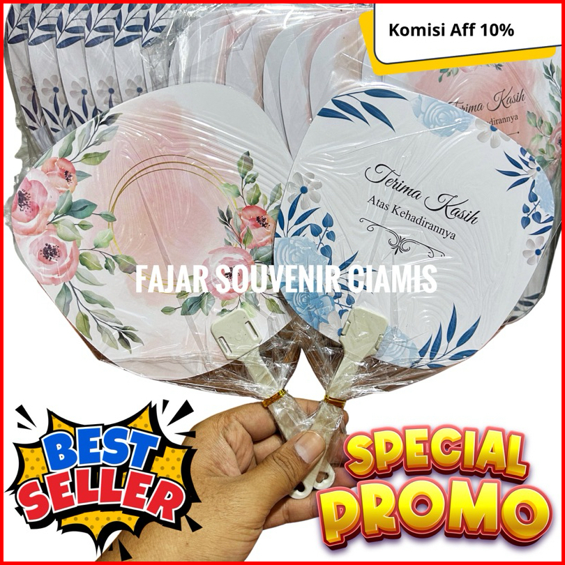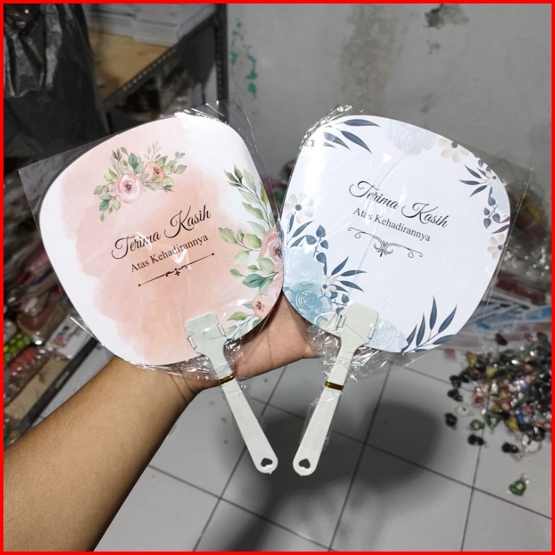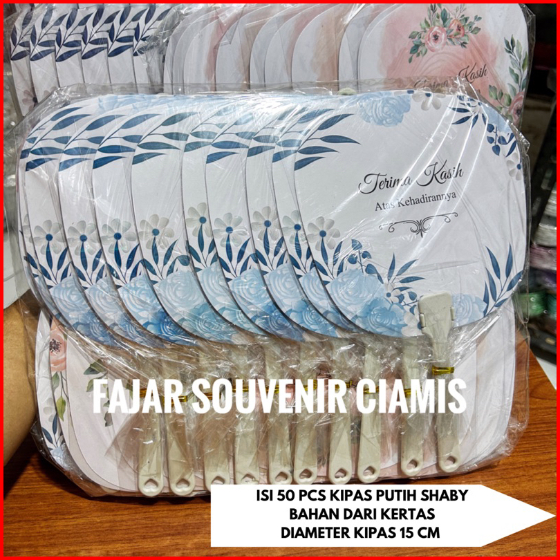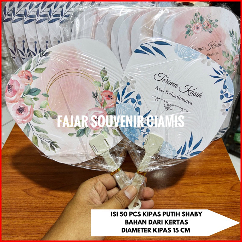 50 Pcs Souvenir Kipas Kertas Putih Shabby Kemas Plastik