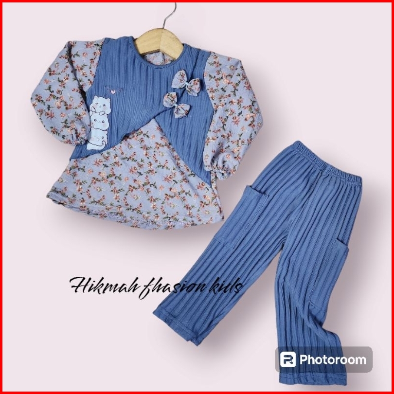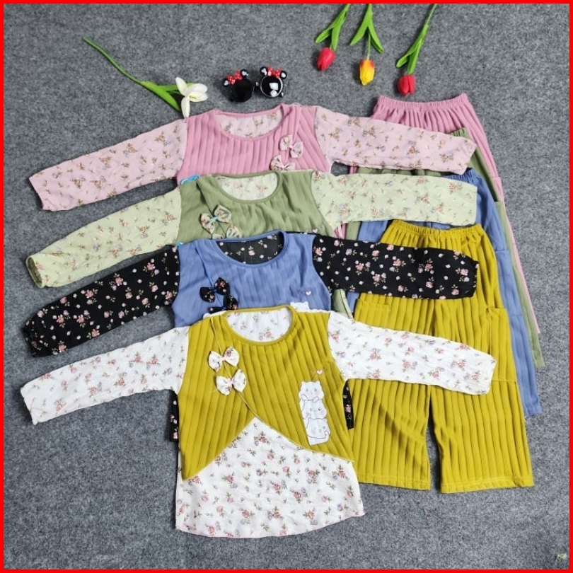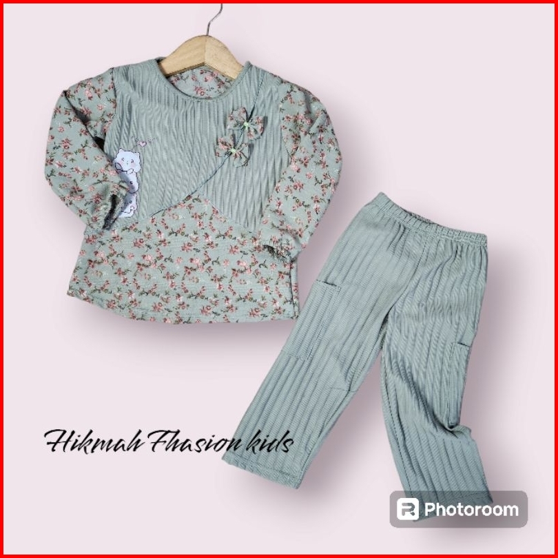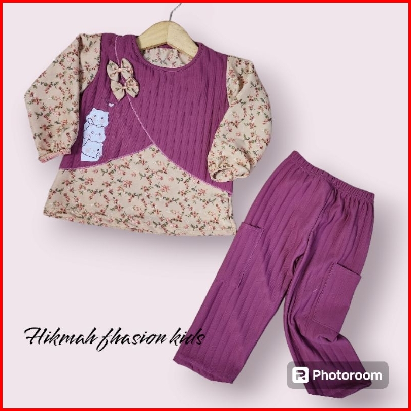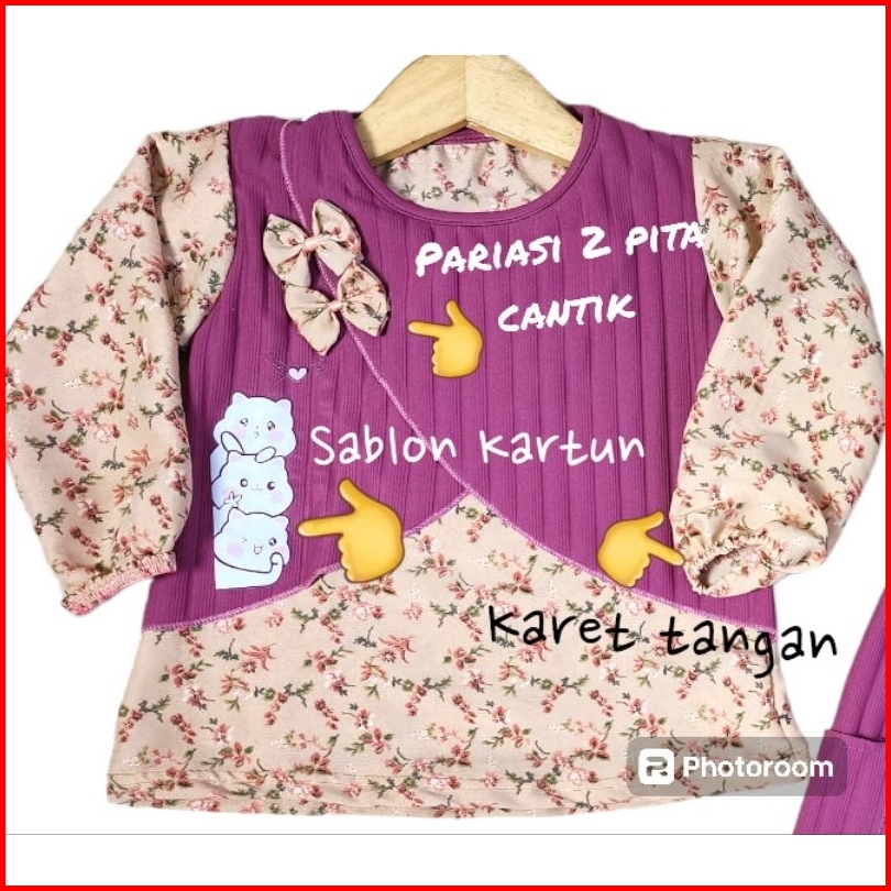 Stelan Anak Terbaru Terlaris Terfavorite Baju Perempuan Terbaru 2024 One Set Melodi Sablon Kucing