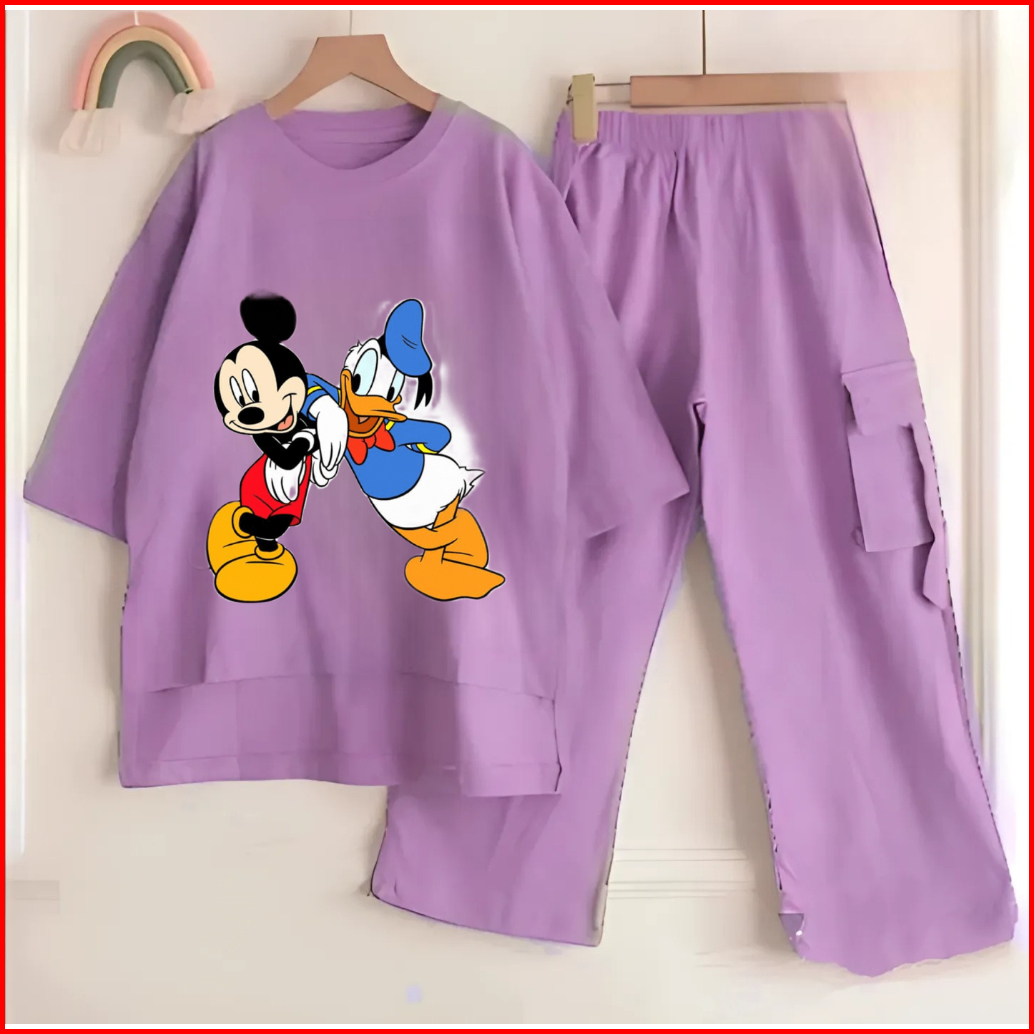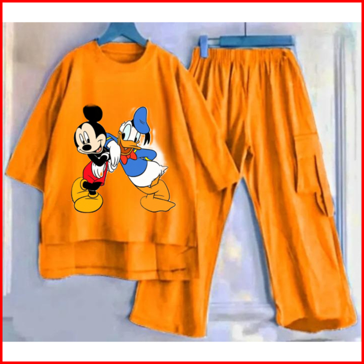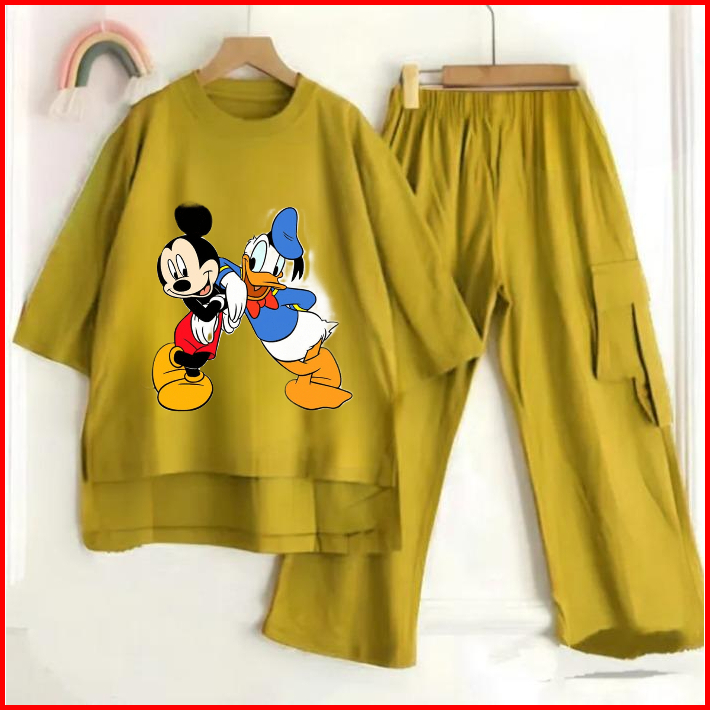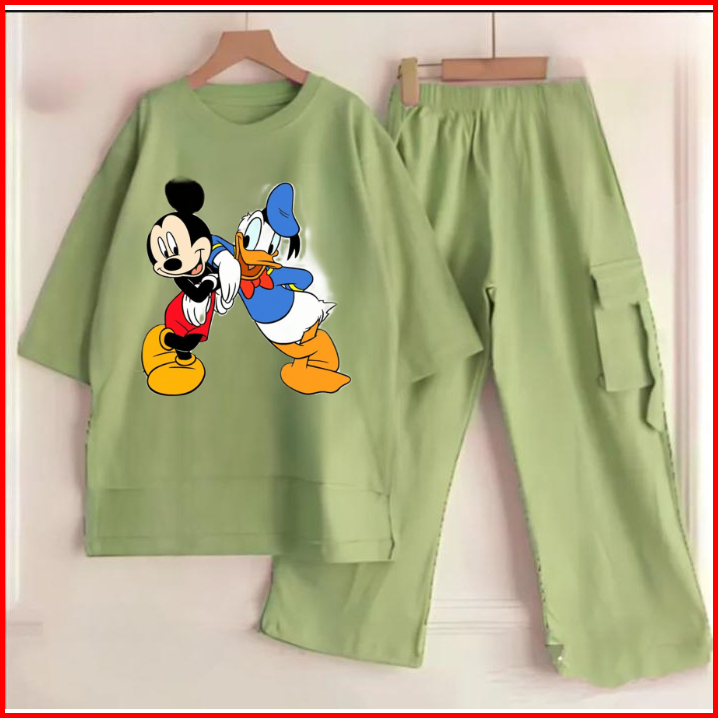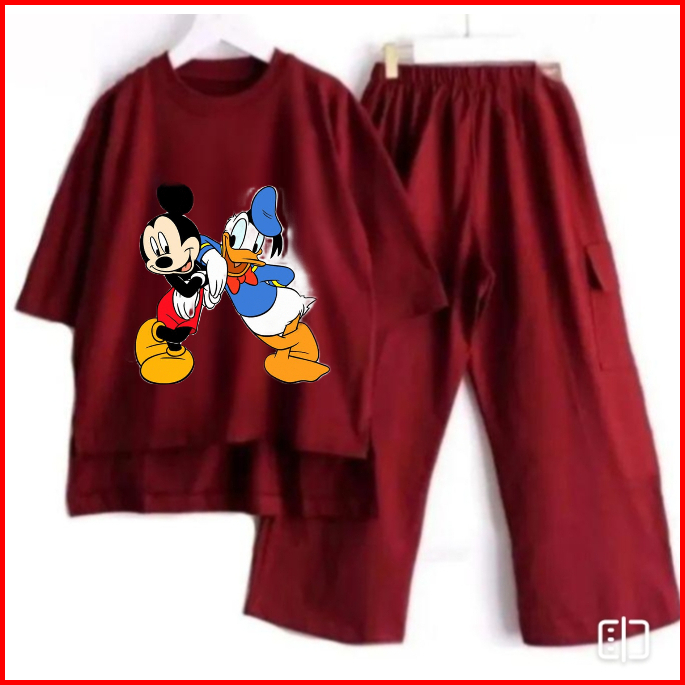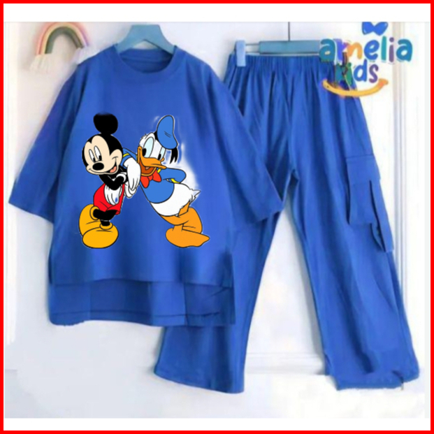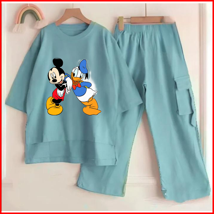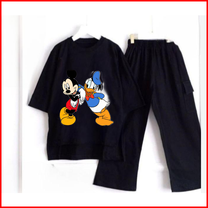 Setelan Anak Cargo Terbaru Sablon Dtf Mickey Mouse And Donald Duck Bahan Crinkle Air Flow Premium Setelan Anak Termurah