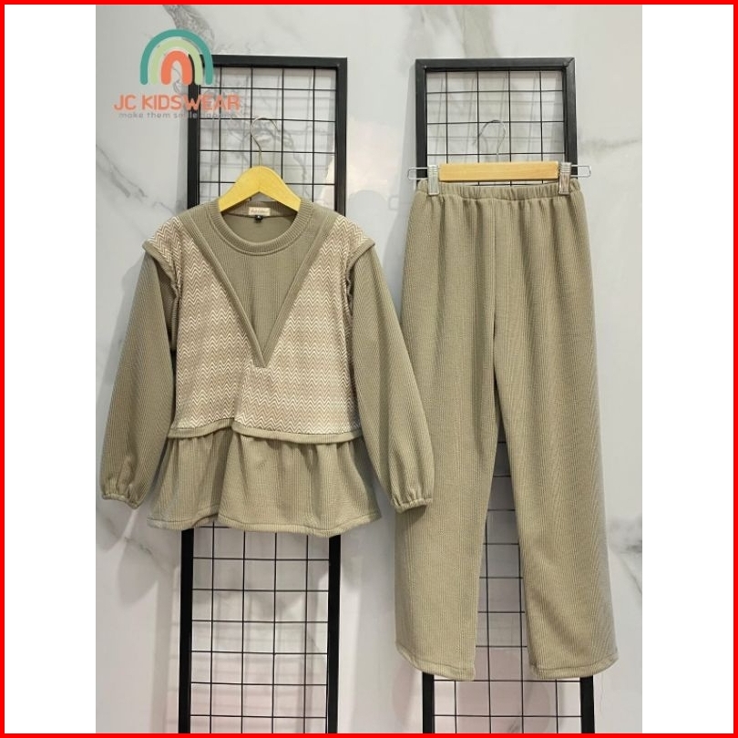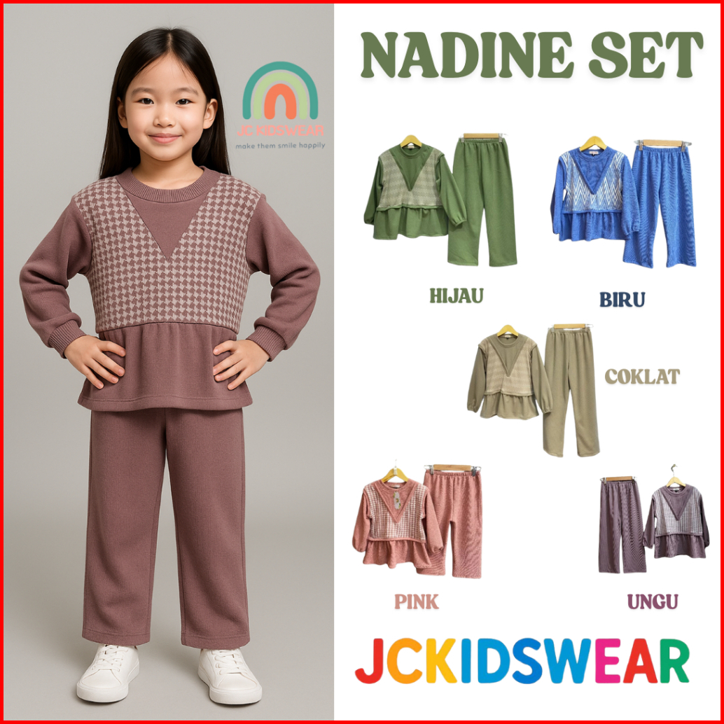 Nadine Set Oneset Anak Perempuan Korean Style Usia 4-13 Tahun Bahan Knit Setelan Lengan Panjang Muslimah