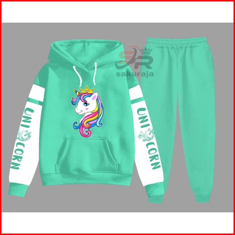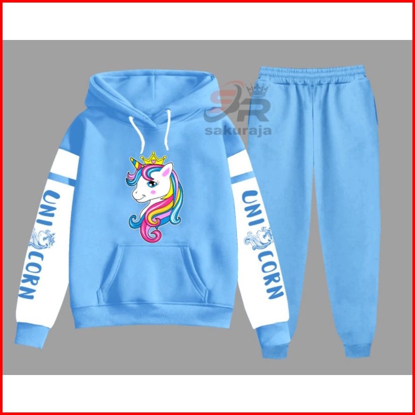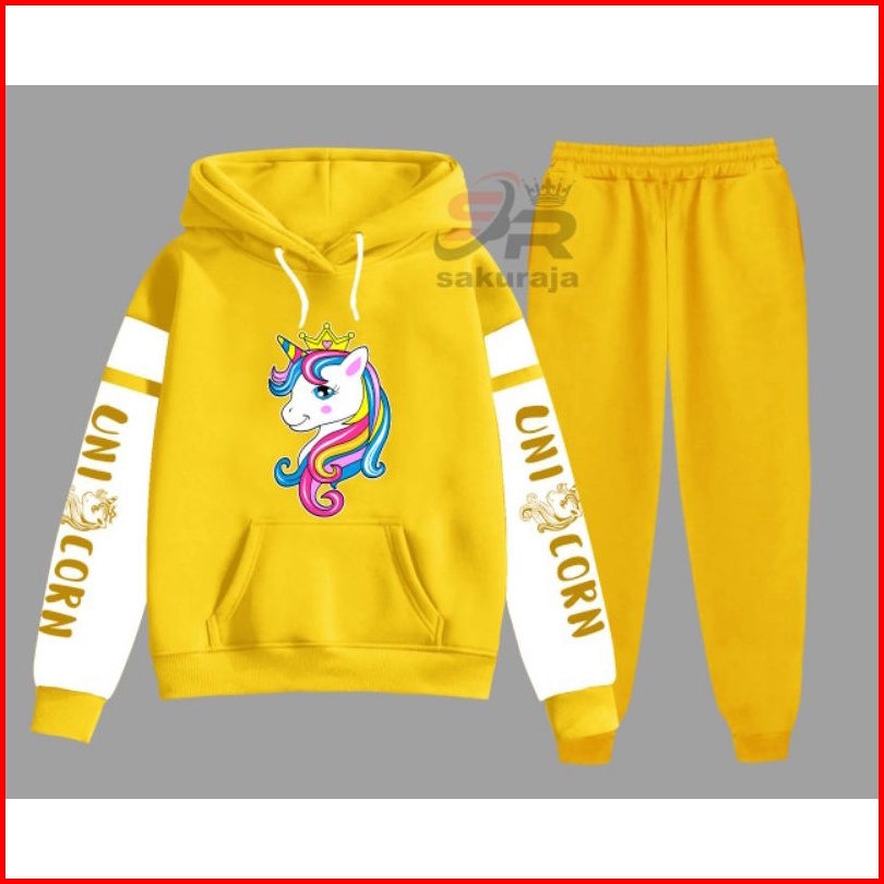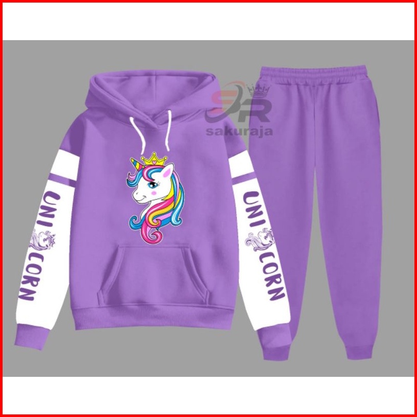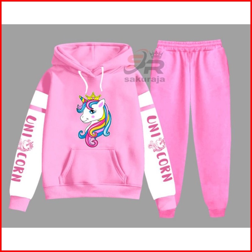 Setelan Anak Unicorn Kombinasi Setelan Hoodie Celana Panjang Model Korea Umur 6-17 Tahun