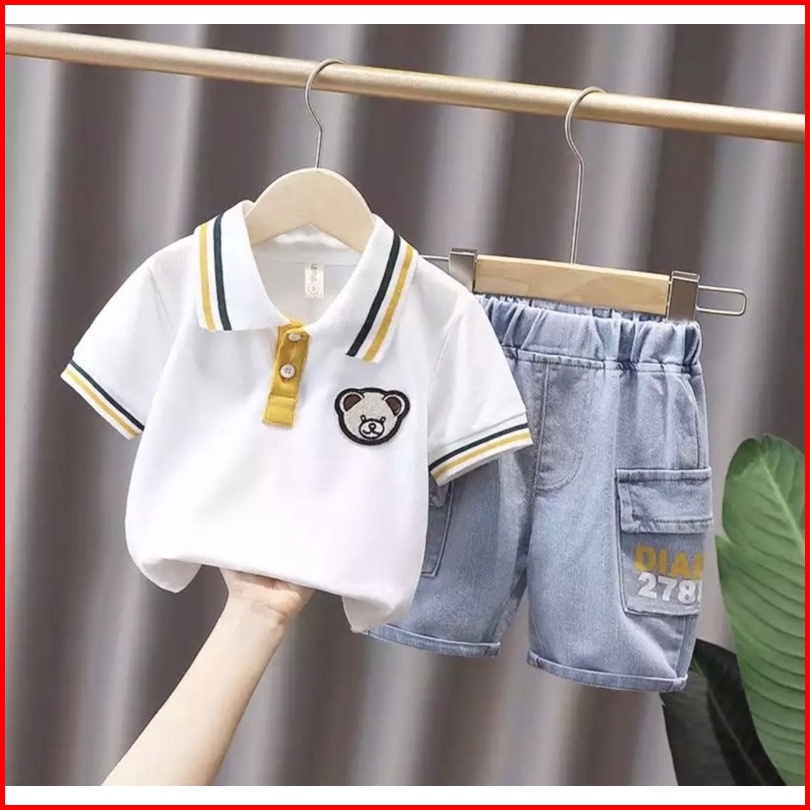 Baju Dan Celana Anak Pendek Denim Model Kantong 1-5 Tahun Grosir Ardan