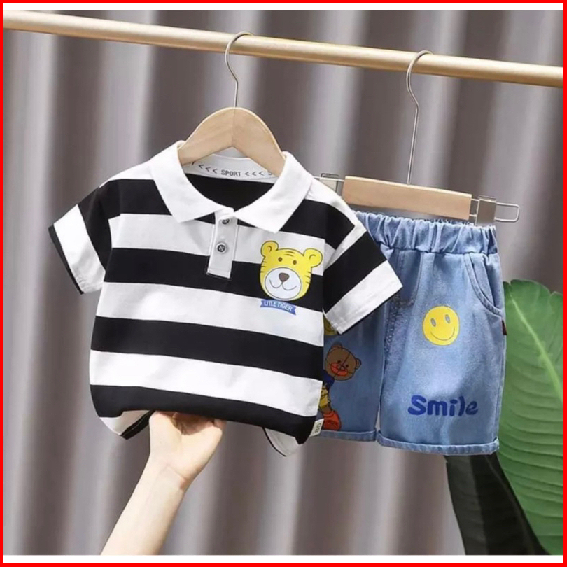 Baju Anak Setelan Anak Berkerah Dan Celana Denim Anak 1-5 Tahun Ardan Baju Anak