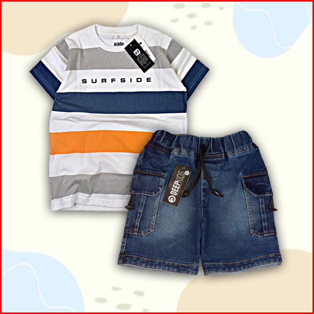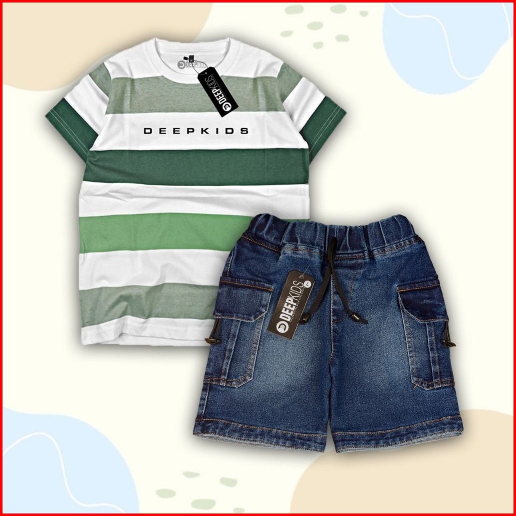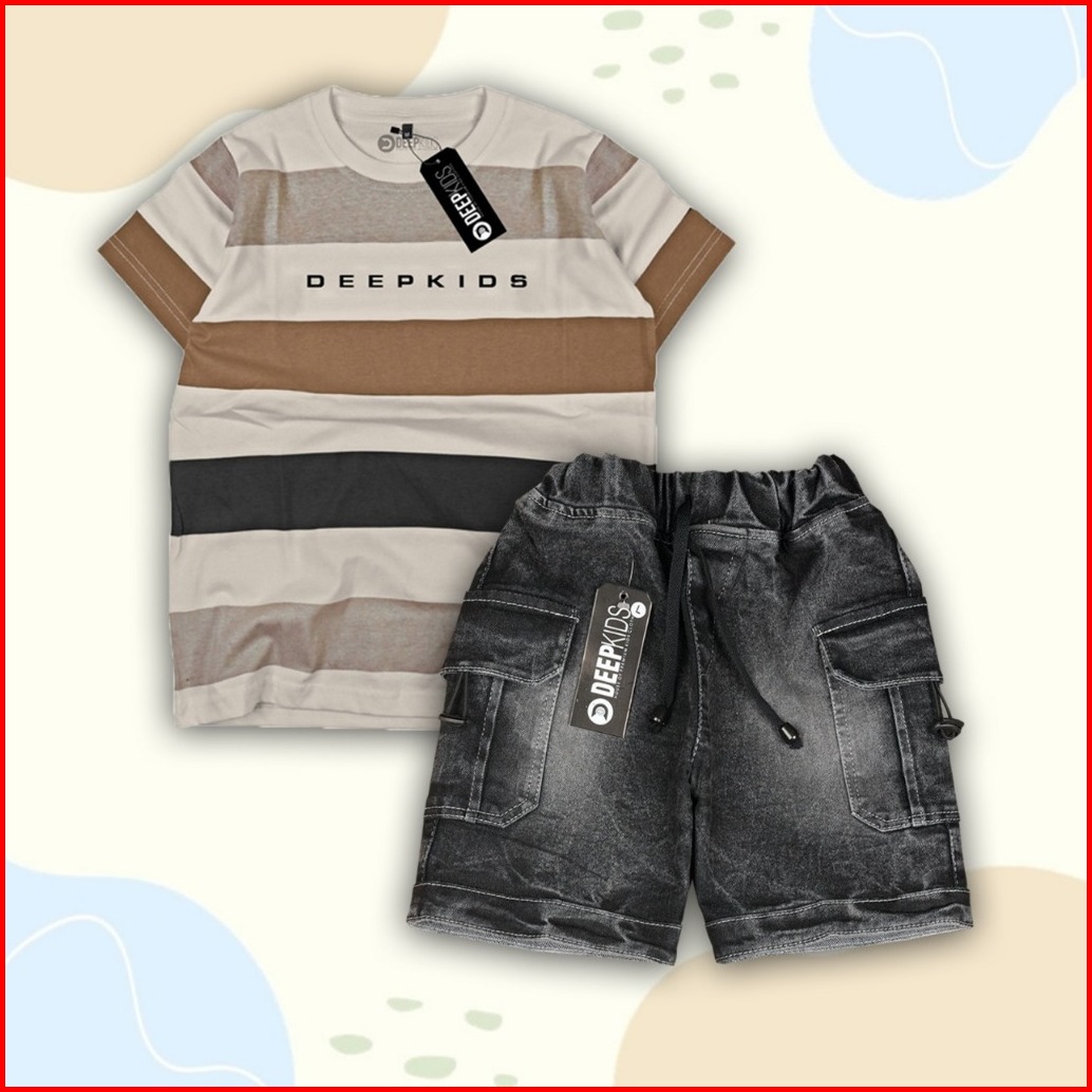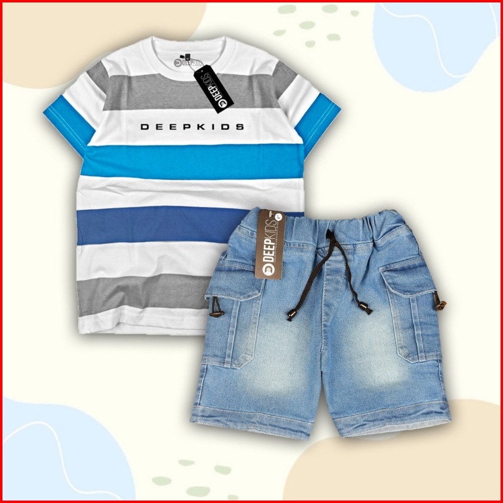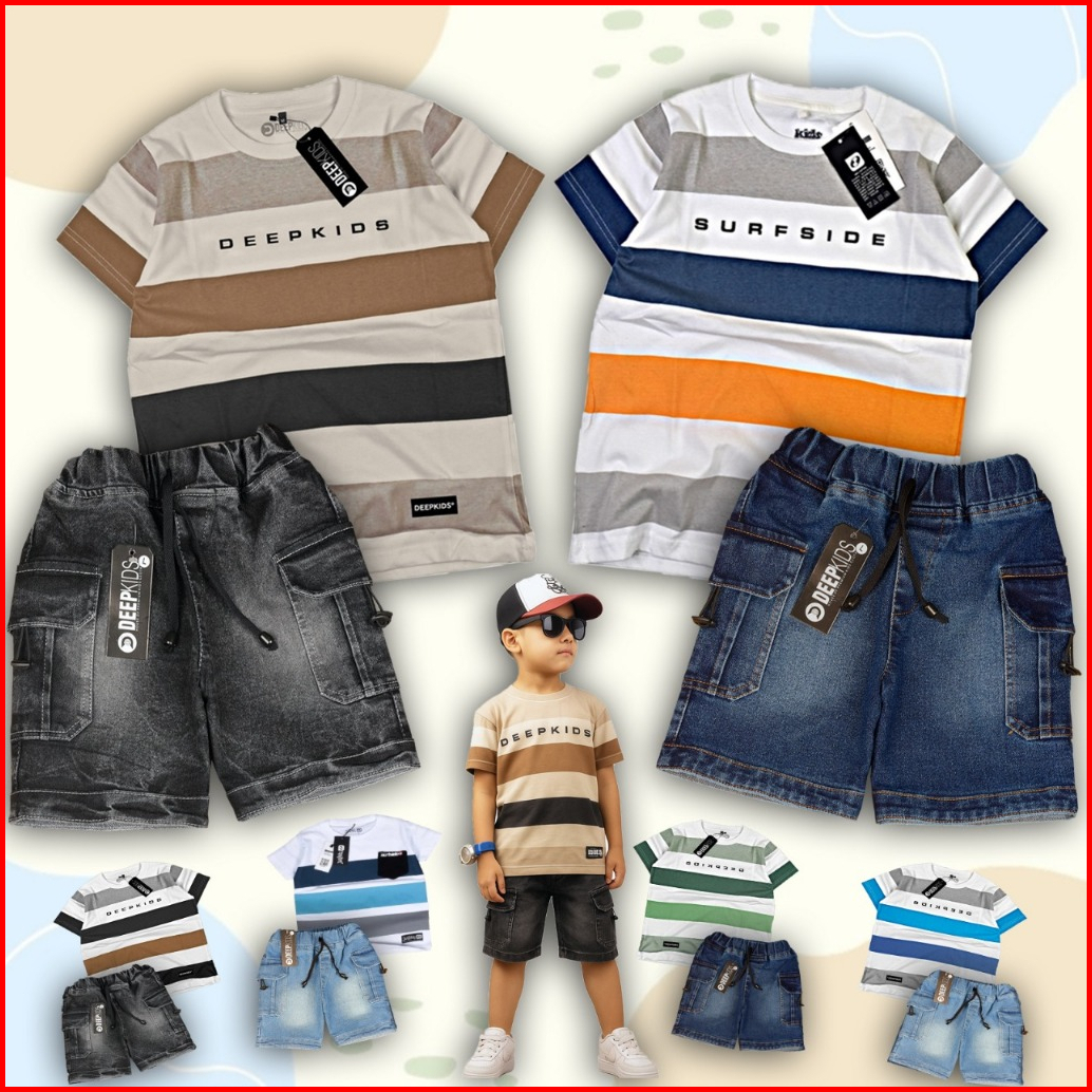 Setelan Anak Laki Laki Distro Kaos Dan Celana Jeans Pendek Usia 1-12 Tahun Set Fullprint Series