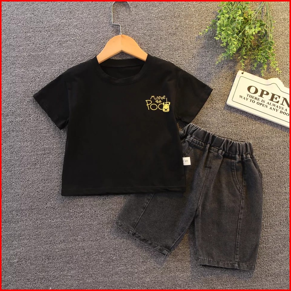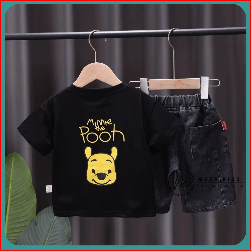 Mazakids Setelan Anak 1-5 Tahun Motif Pooh Black Setelan Anak Laki Laki Mazakids