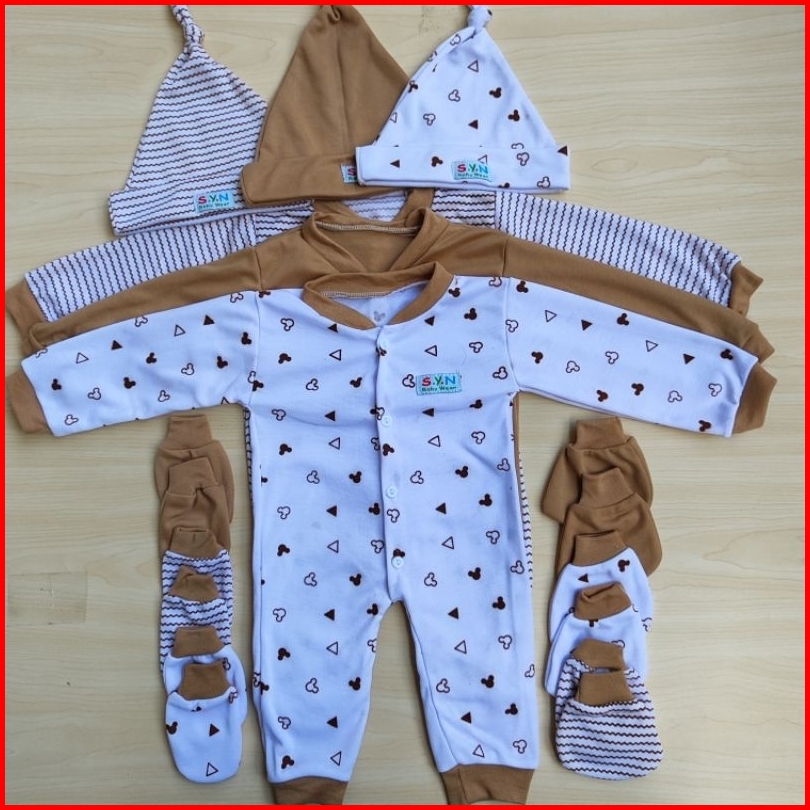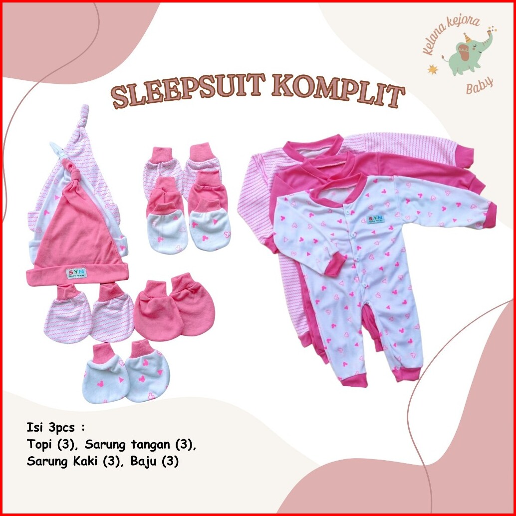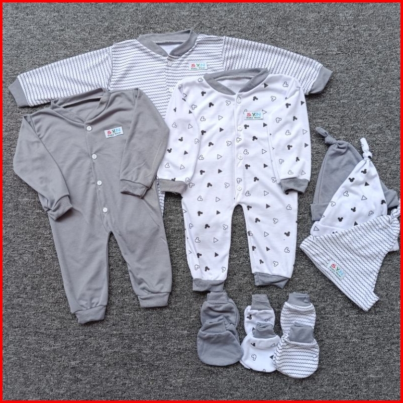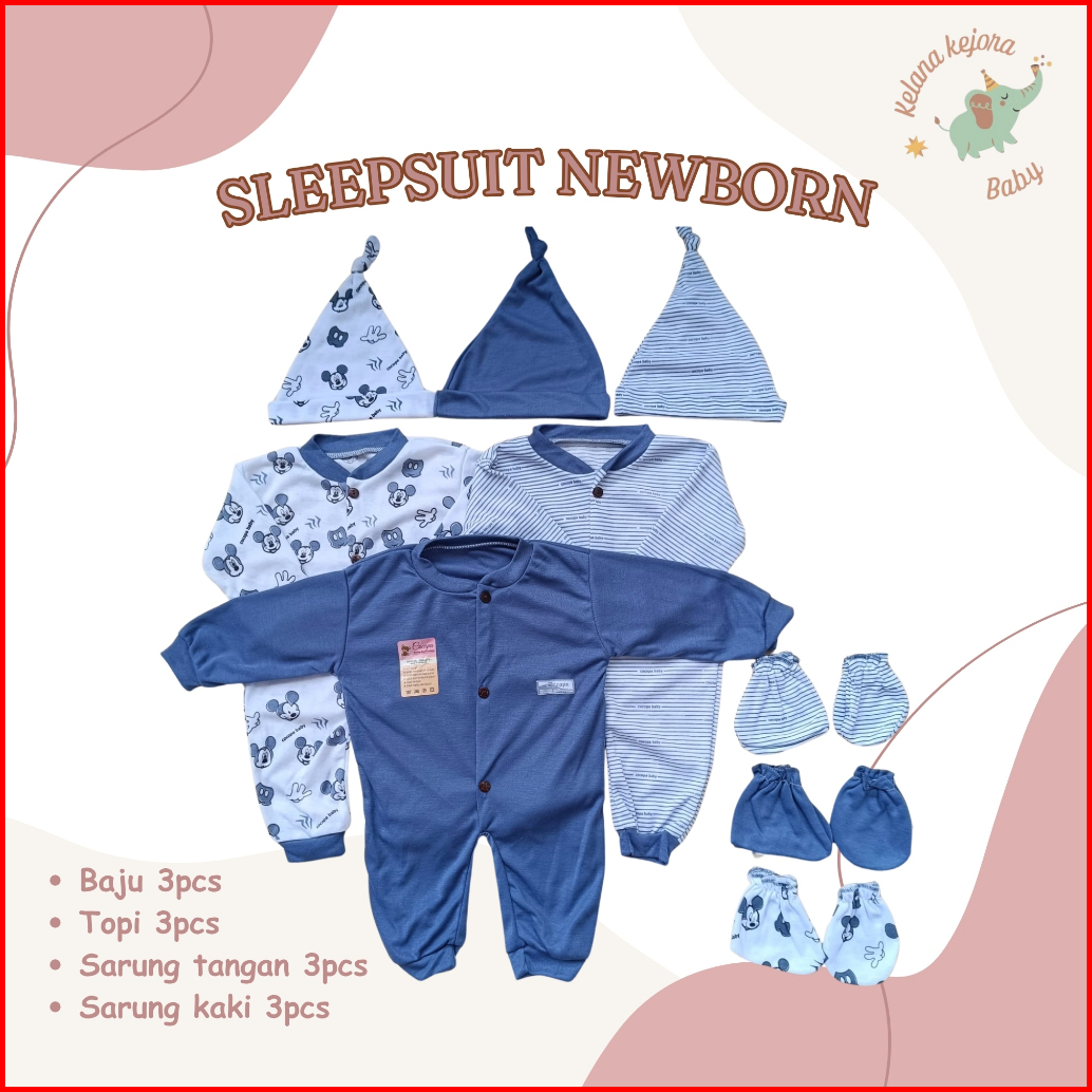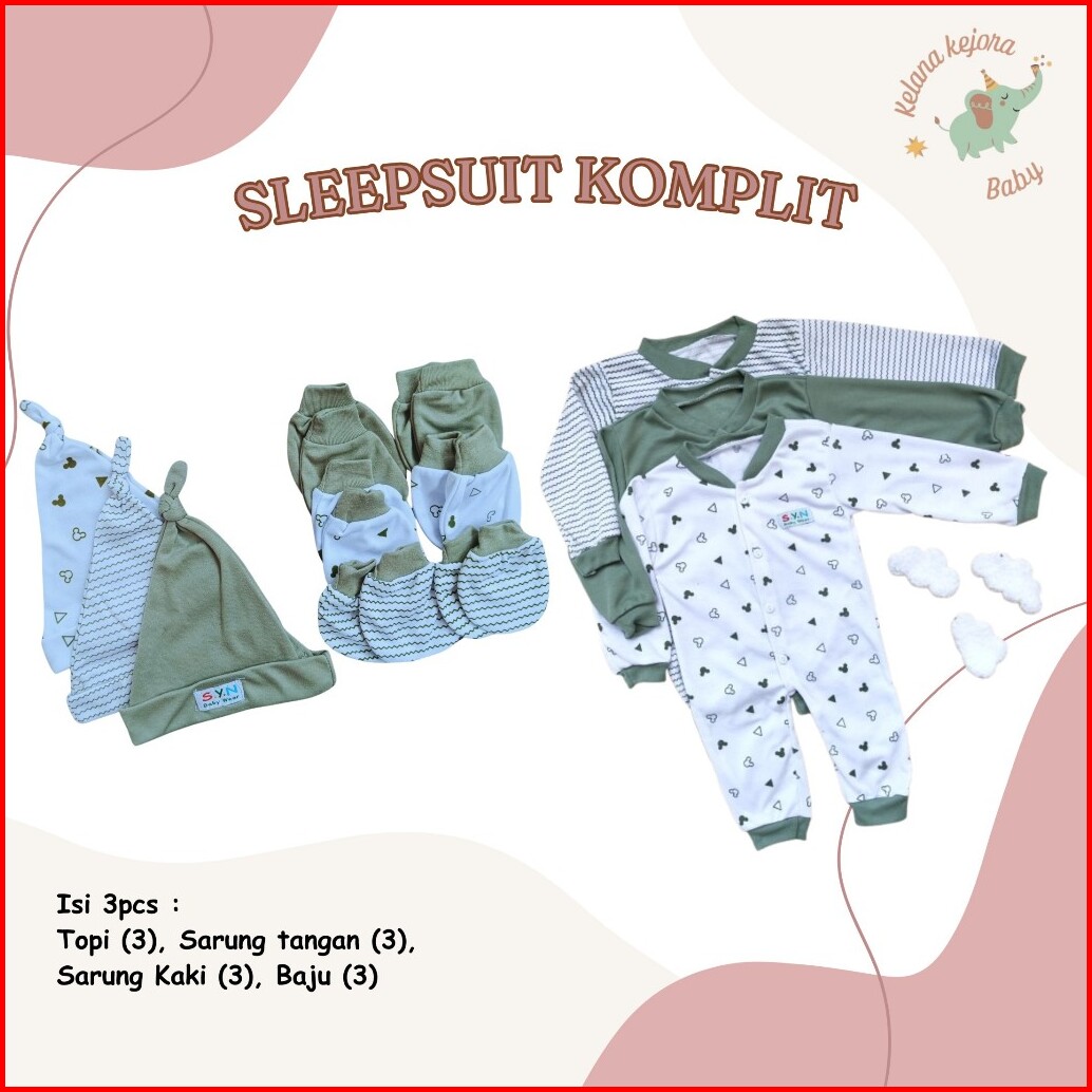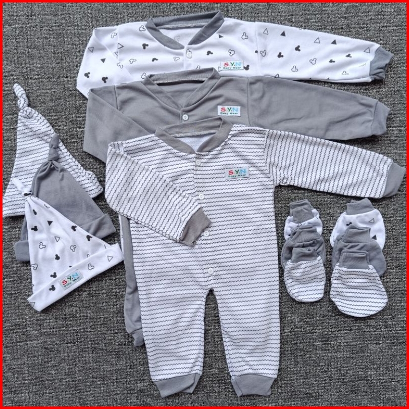Dapat 3set 4in1 Sleepsuit Panjang Bayi Topi Stk Newborn Seri Abu Baju Jumper Set Panjang Bayi 0-3 Bulan Kado Lahiran Bay