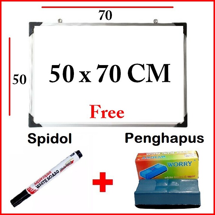 Papan Tulis White Board Gantung Ukuran 50 Cm X 70 Cm Free Spidol Dan Penghapus