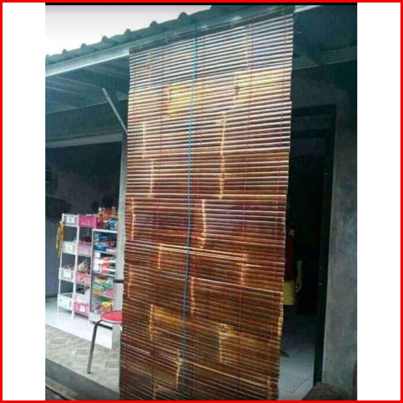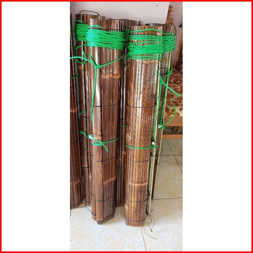 Tirai Bambu Hitam L1xt2m L1x2 5m L1x175 L1x1 5m 1x2 2m Vernis Plitur Lengkap Katrol