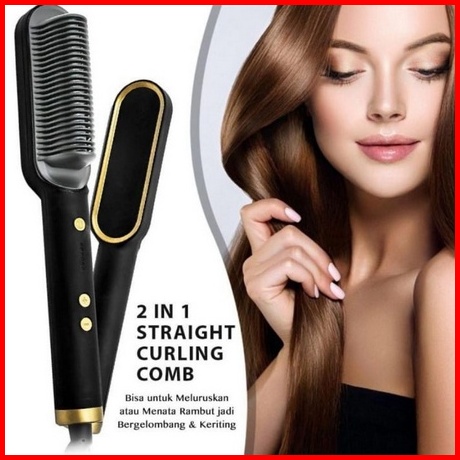 Catokan Sisir Anti-panas Pelurus Rambut Hair Straightener Curler 2 In 1 Catok Sisir Listrik