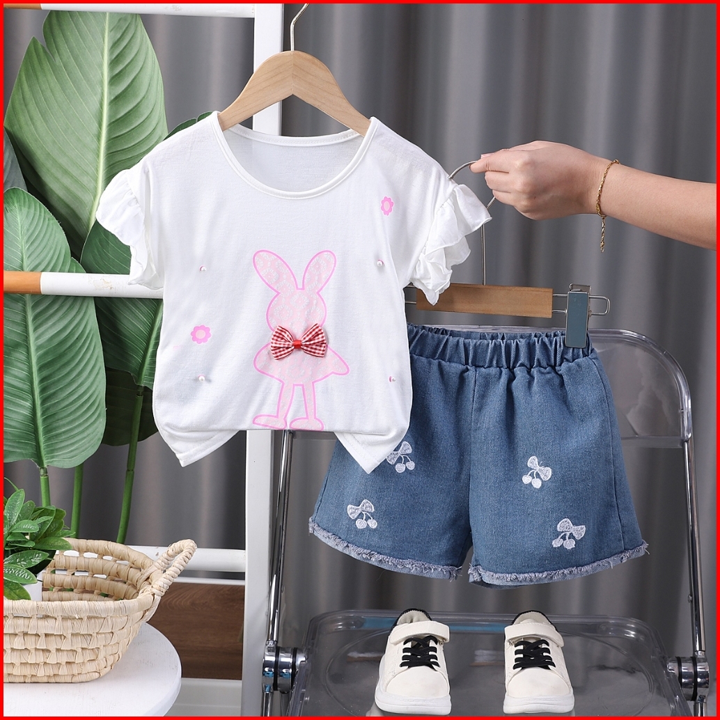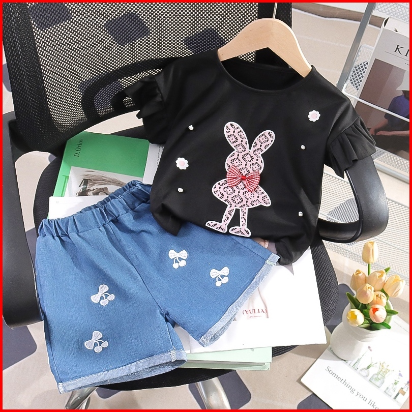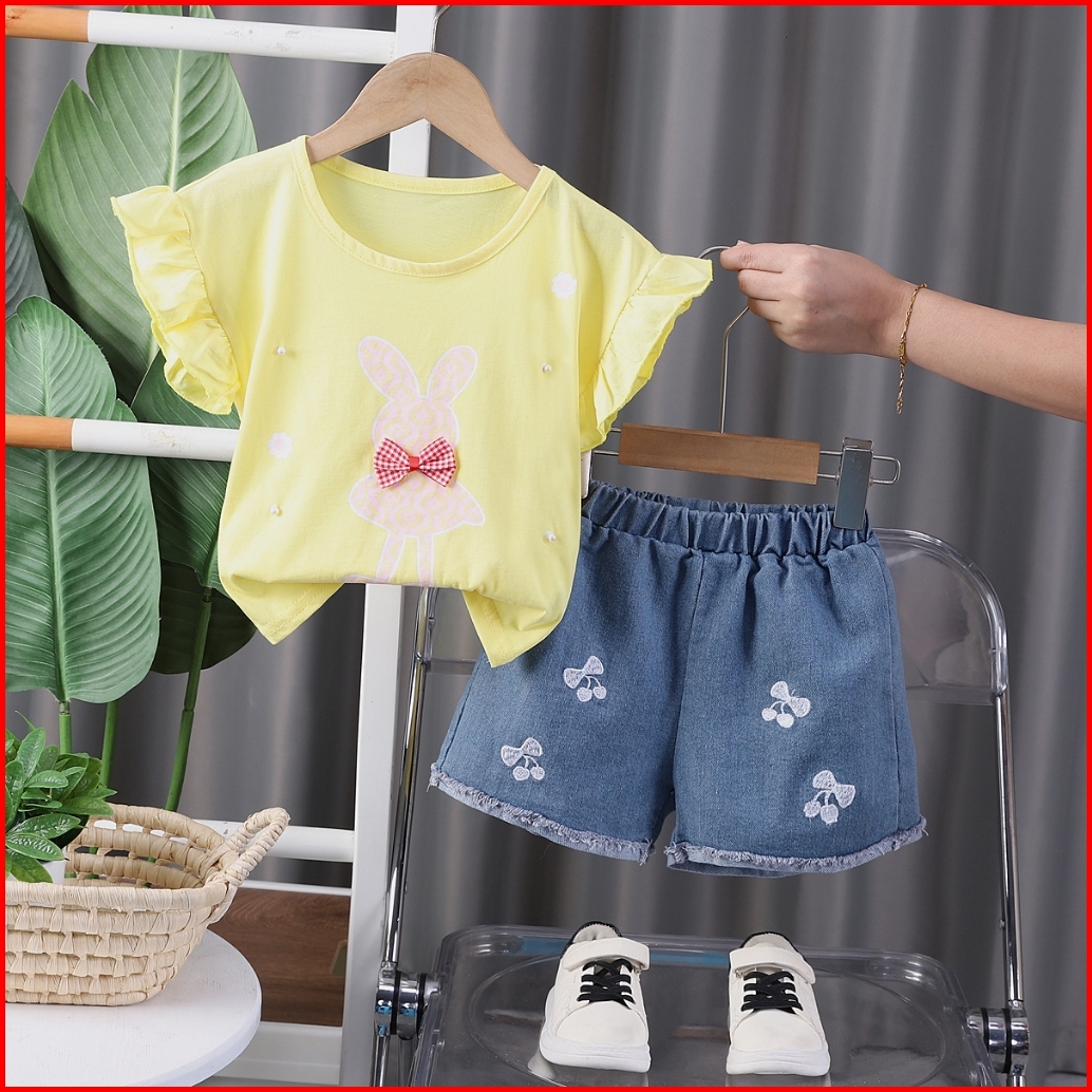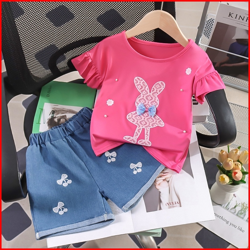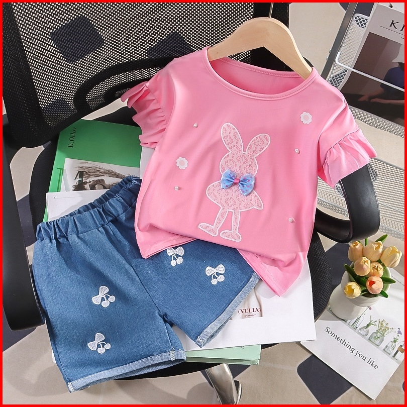 Setelan Anak Perempuan Lengan Pendek Usia 1-4 Tahun Set Dua Potong Modis