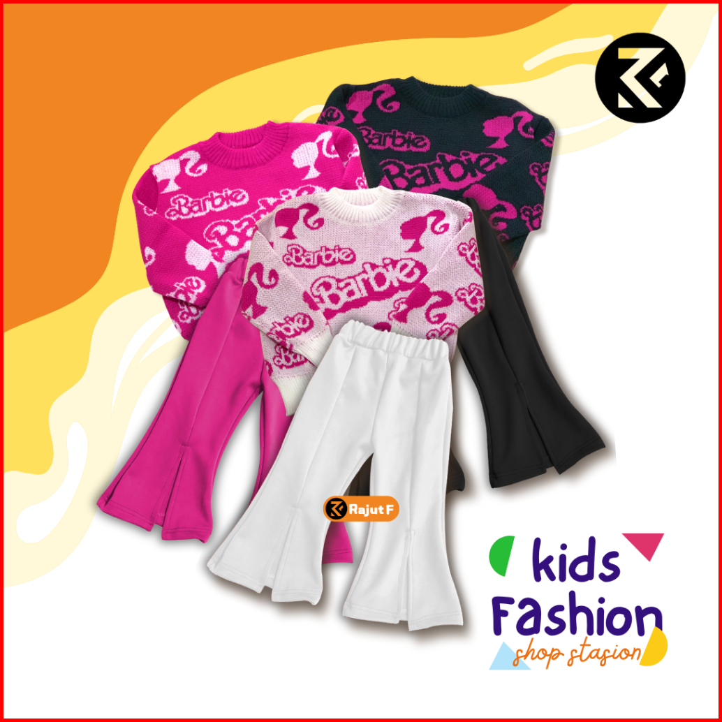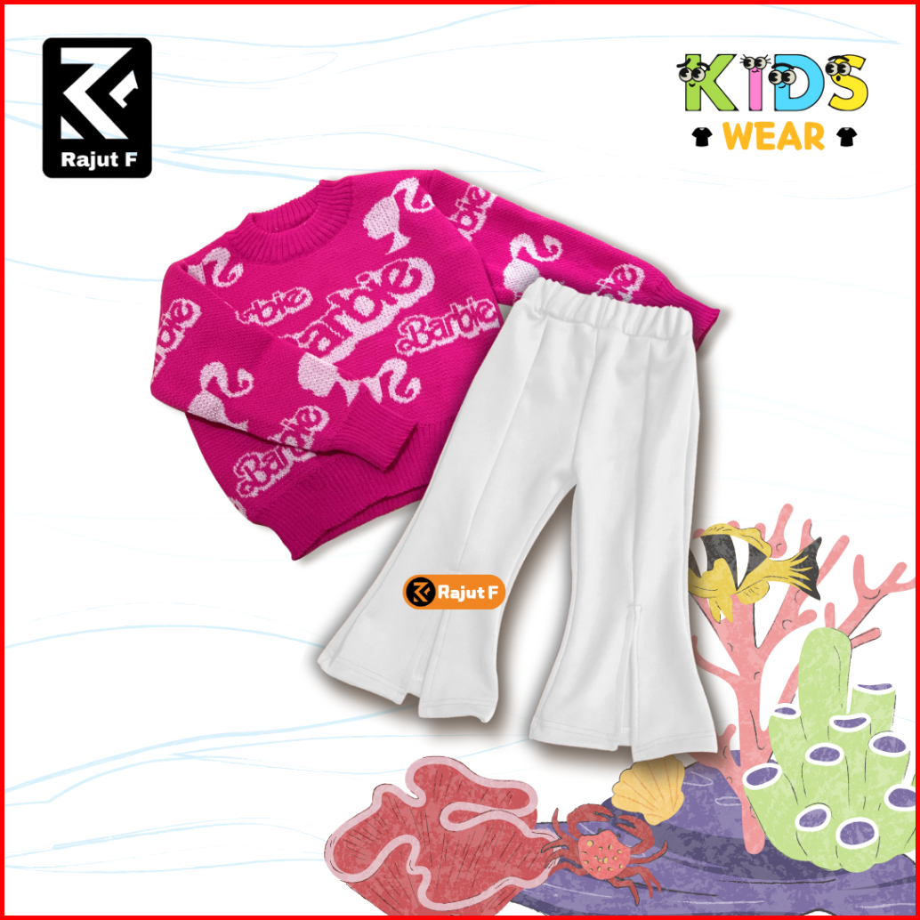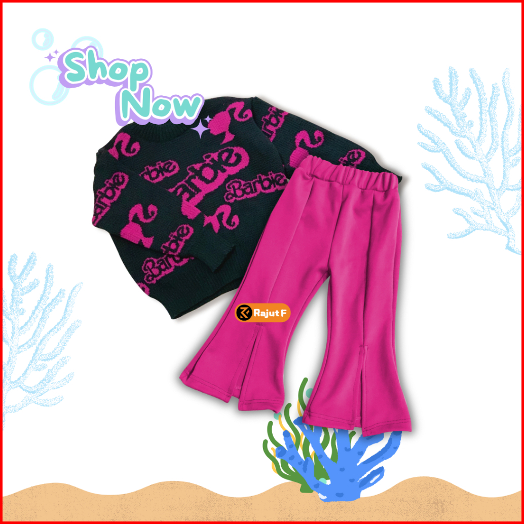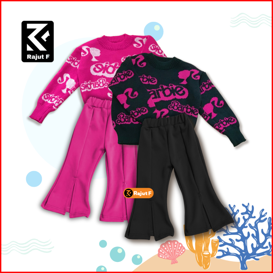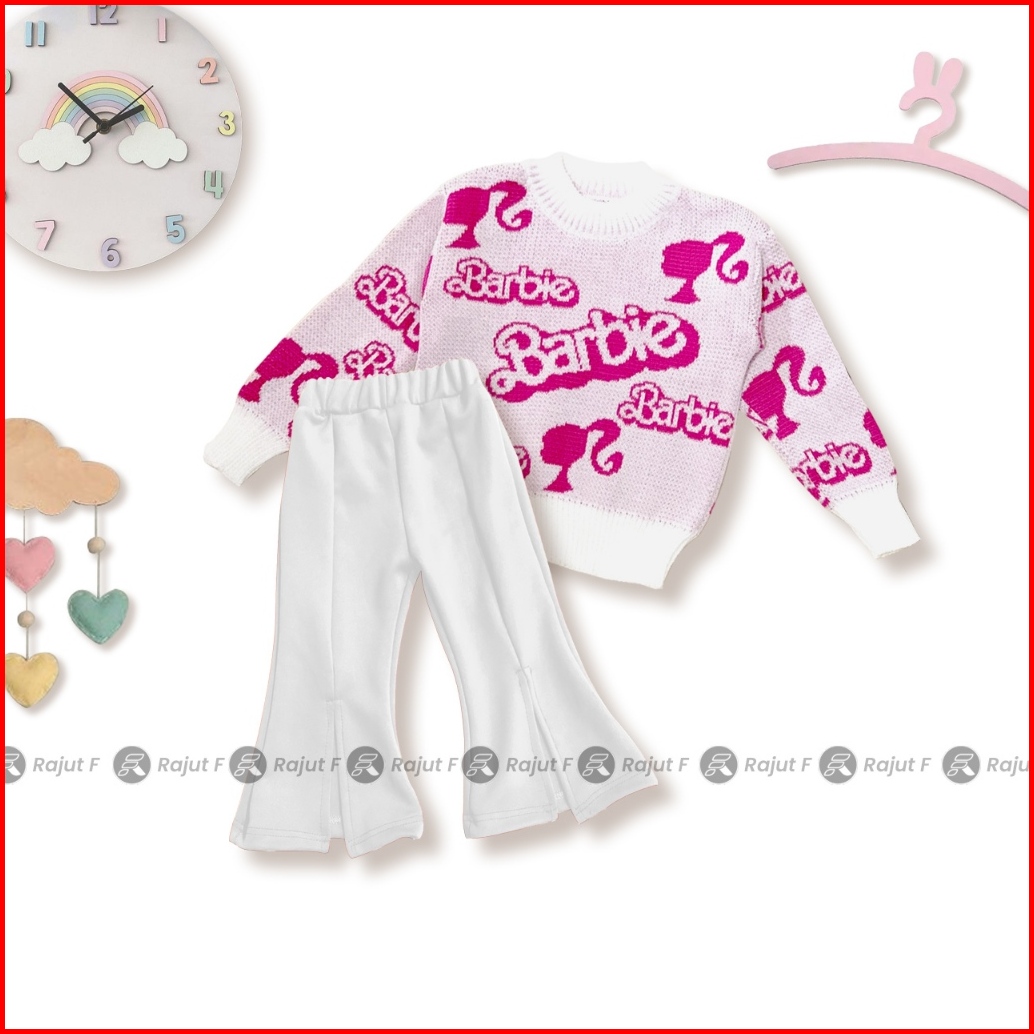 Diskon - Setelan Sweater Rajut Anak Barbie - Cutbray Belah Tengah Usia 1-6th