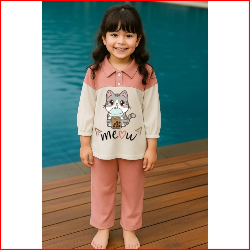 Setelan Anak Perempuan Usia 4-16tahun Crinkle Airflow