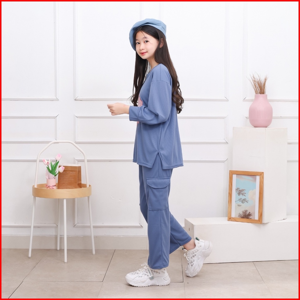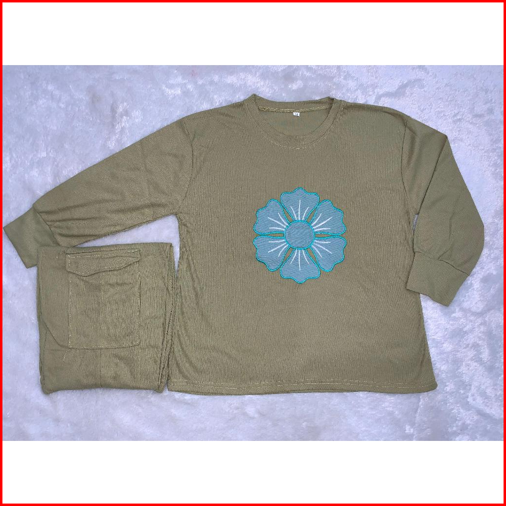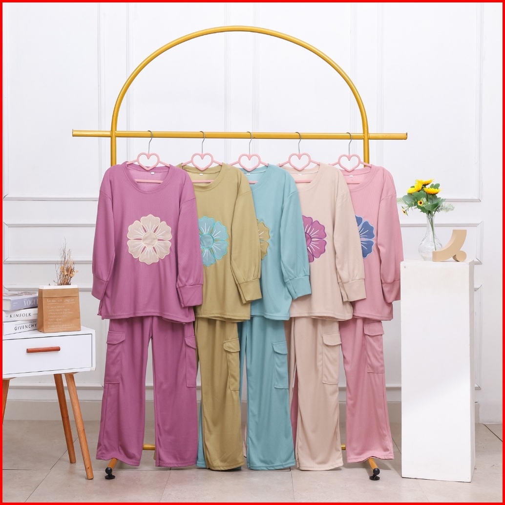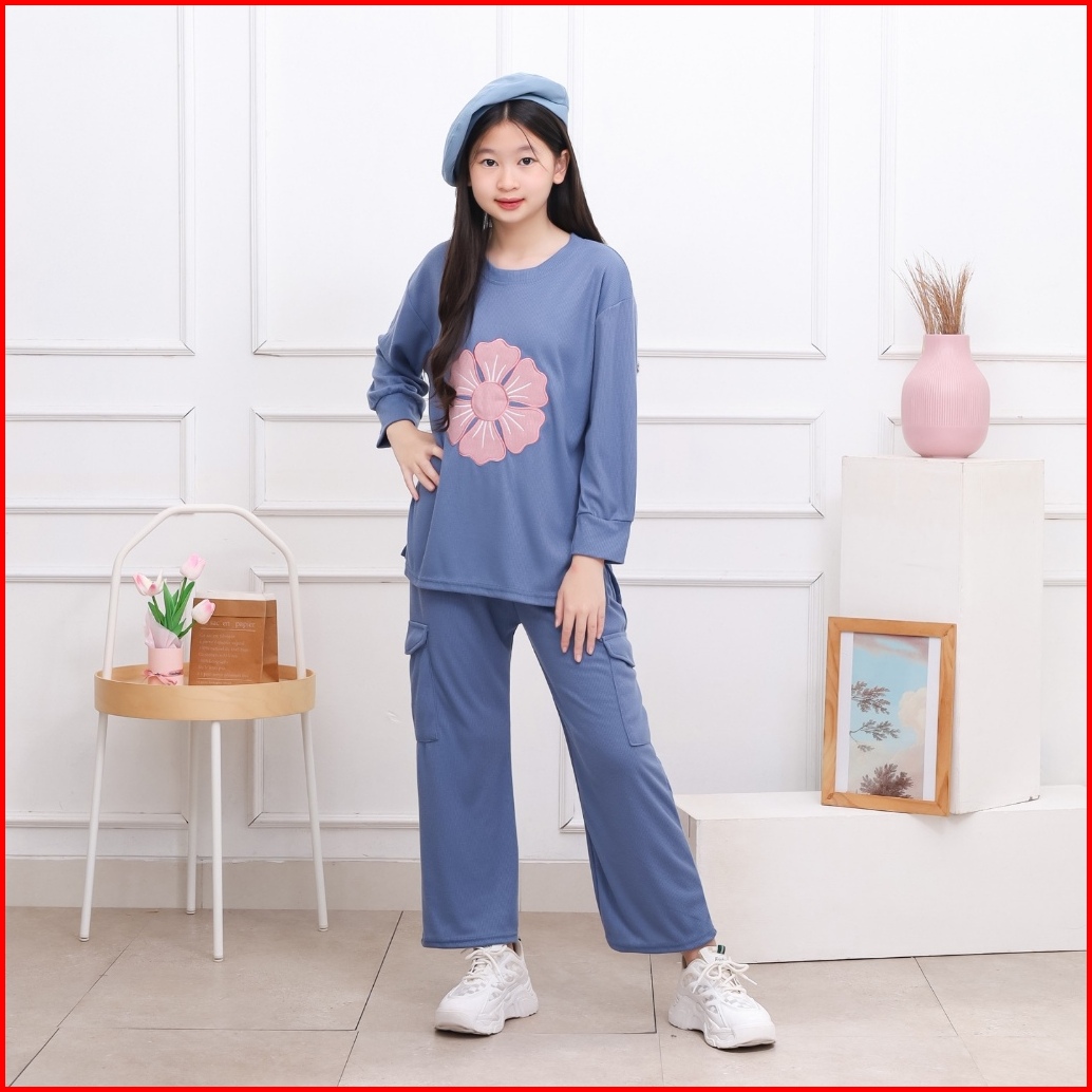 Setelan Cargo Anak Perempuan Motif Bordir Usia 4-12 Tahun Bahan Corduray