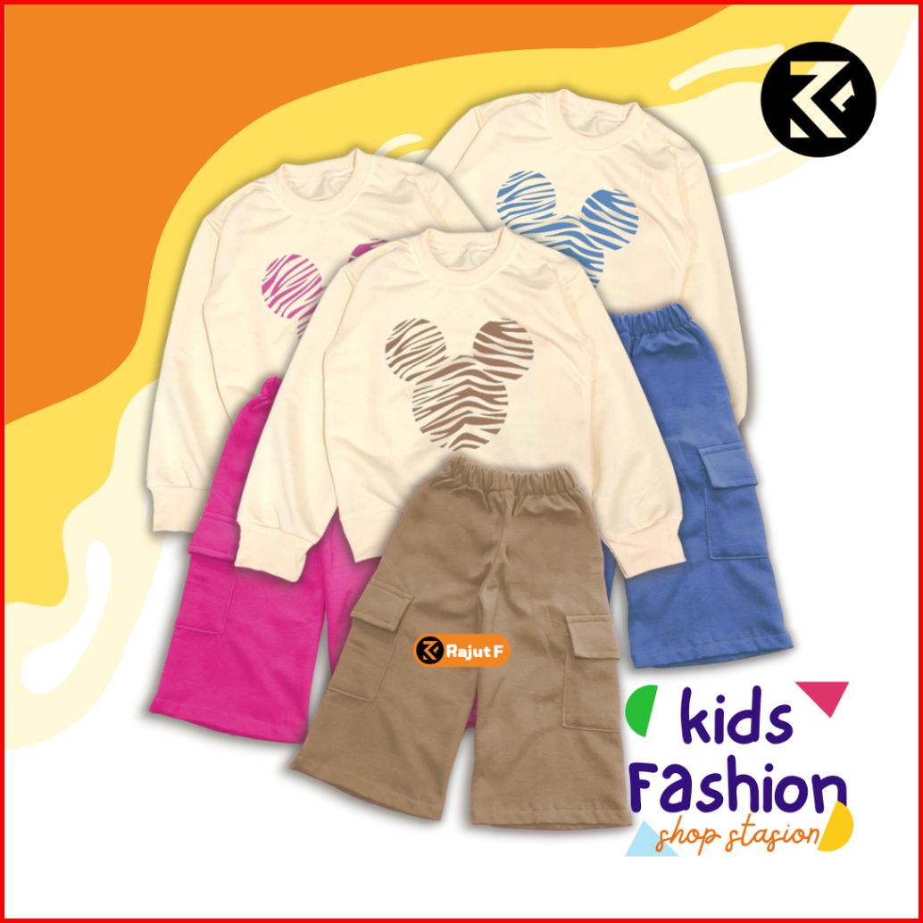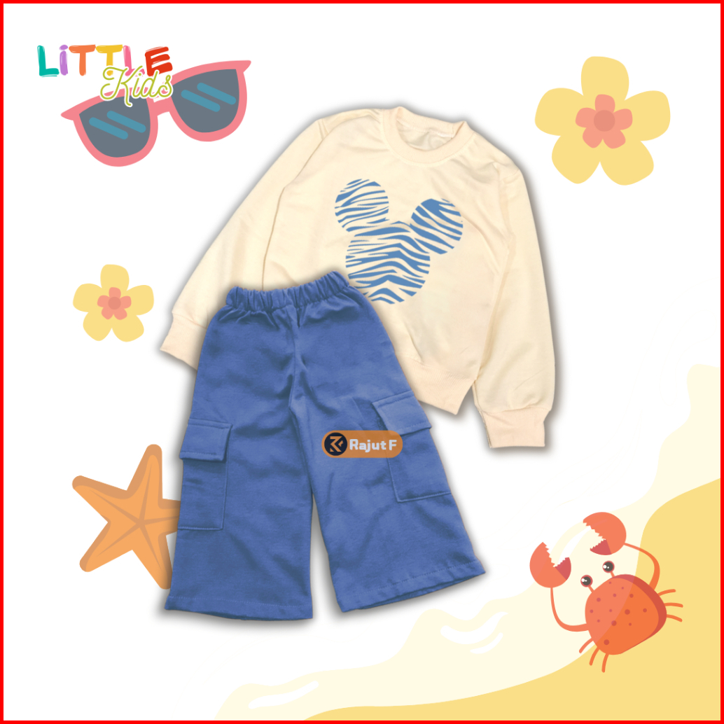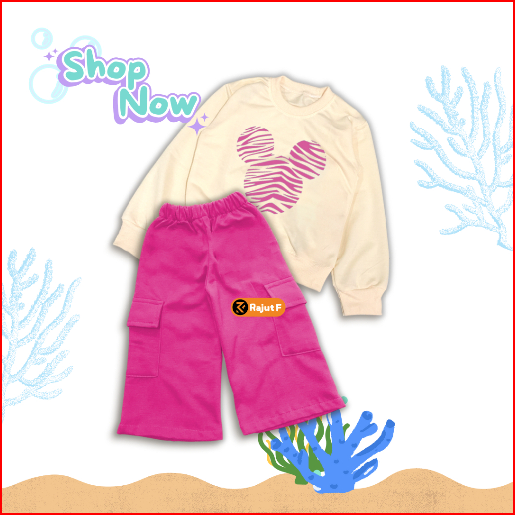 Baju Setelan Oversize Mickey Mouse Bahan Baby Terry Anak Perempuan Usia 1-8th
