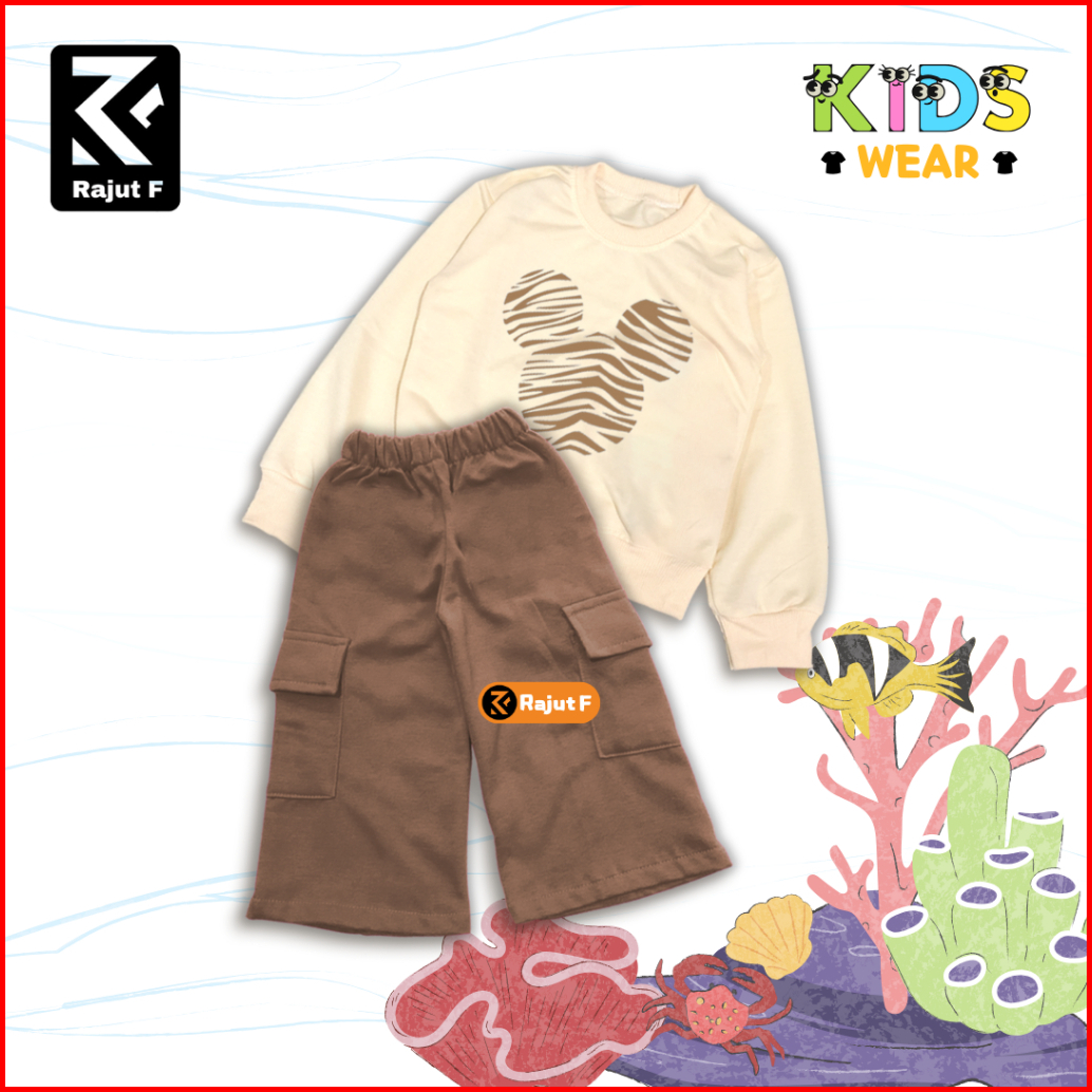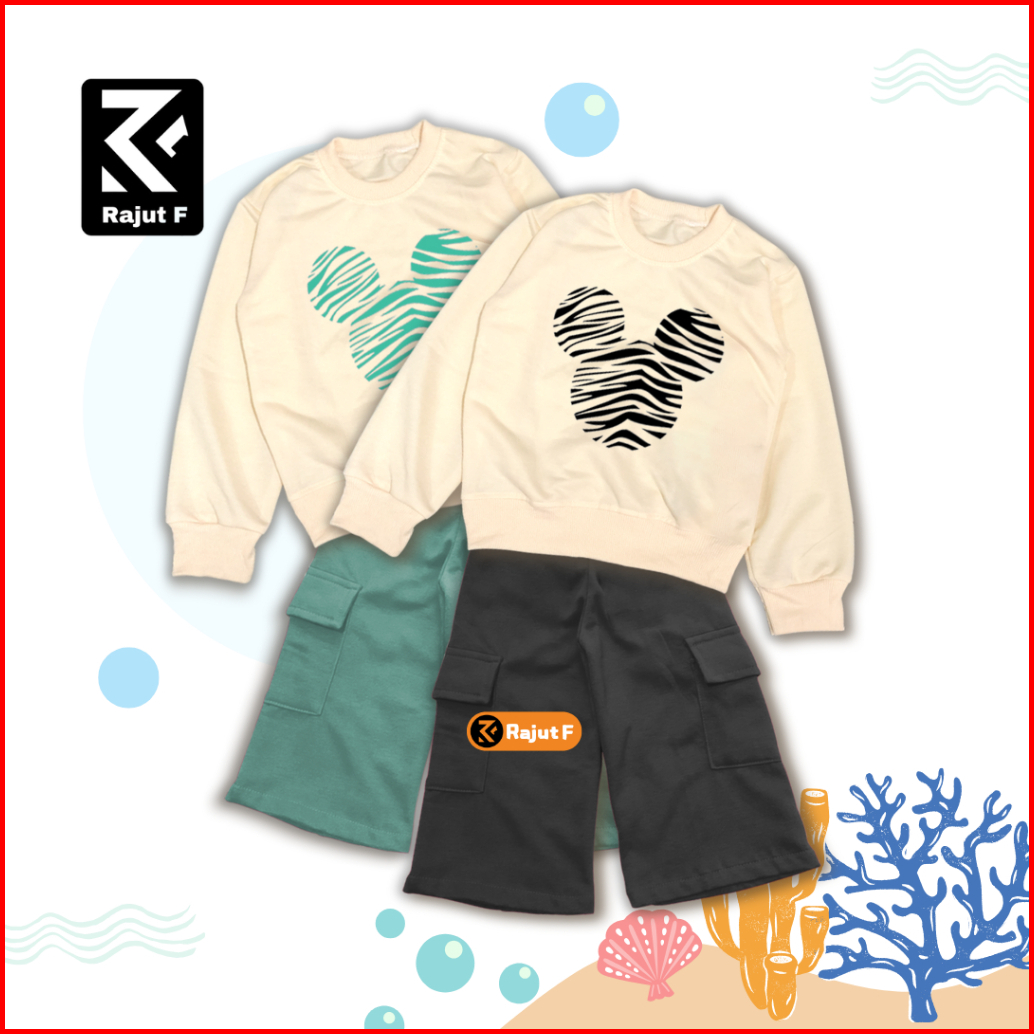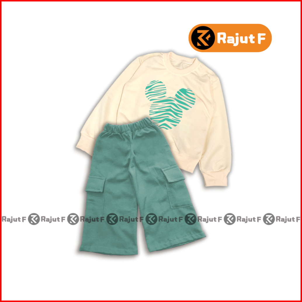 Baju Setelan Oversize Mickey Mouse Bahan Baby Terry Anak Perempuan Usia 1-8th