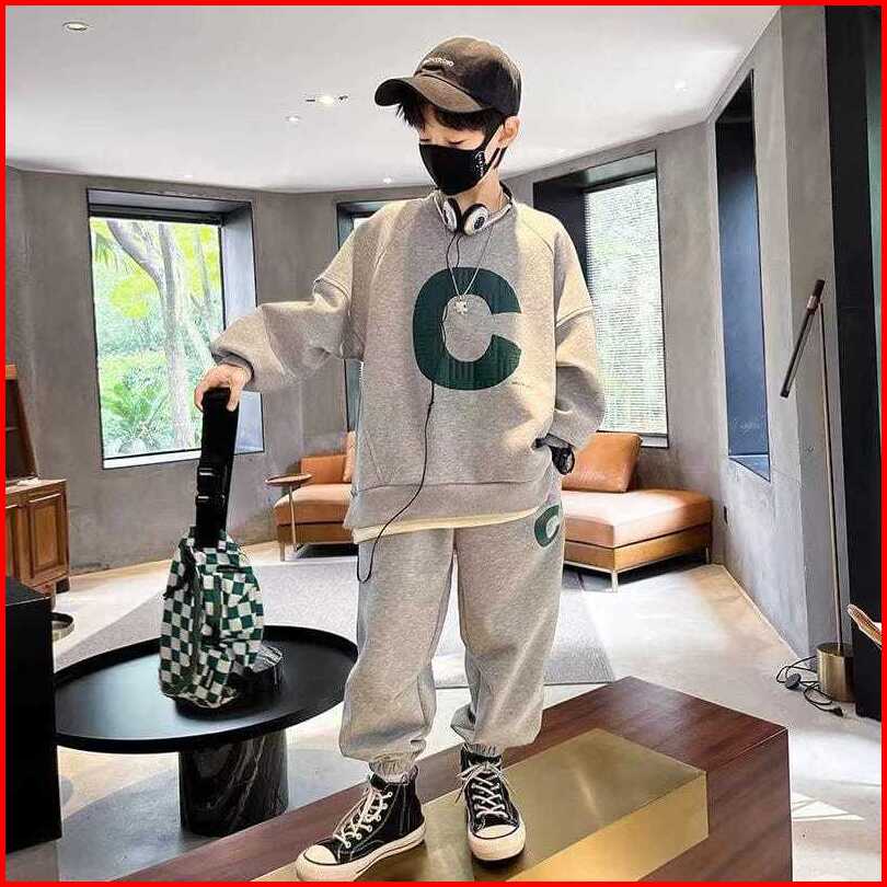 An-92 80 Setelan Baju Anak Cowok Lengan Panjang Celana Panjang Motif R C
