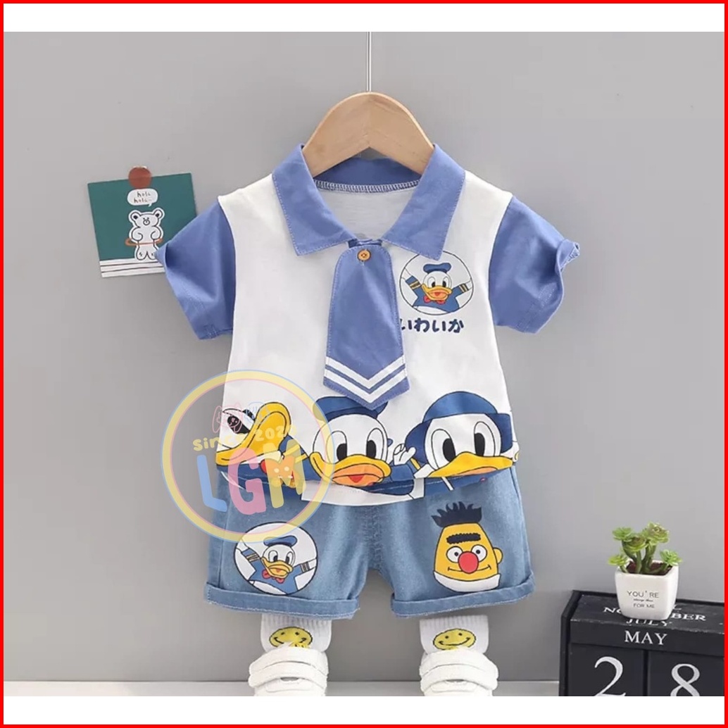 Ligimikids- Setelan Anak Laki Laki Denim Setelan Anak Polo Shirt Lengan Pendek 1-6th
