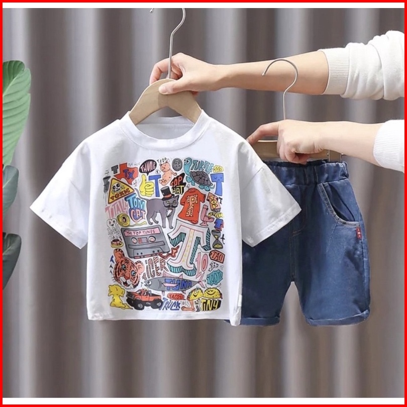 Setelan Baju Dan Celana Anak Laki Laki Motif Hewan 1-5 Tahun
