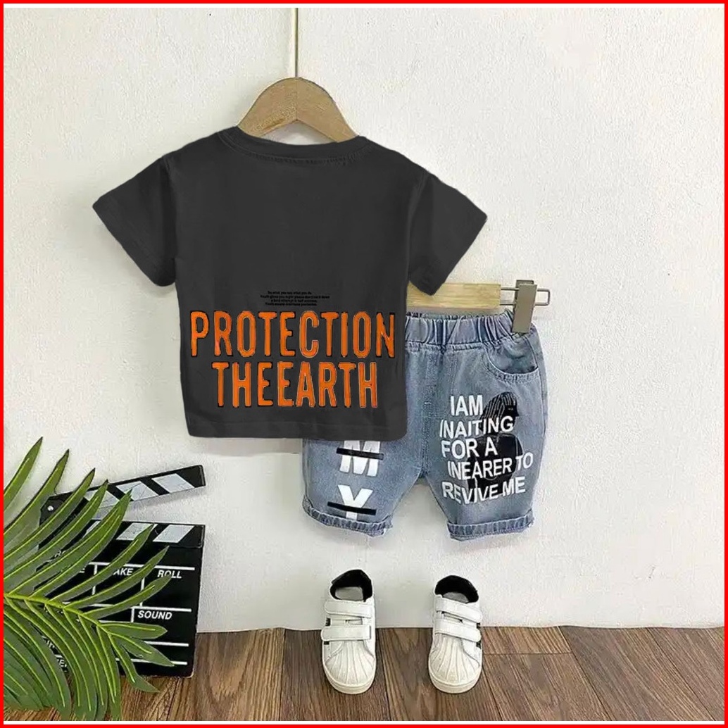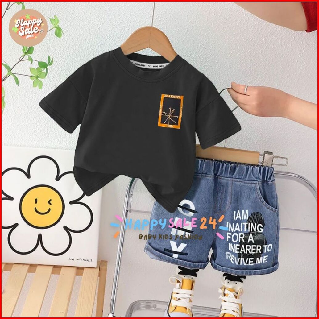 Setelan Jeans Pendek Kaos Anak Laki-laki Kekinian Celana Jeans Pendek Usia 1-5 Tahun Setelan Anak Laki Laki Baju Dan Cel