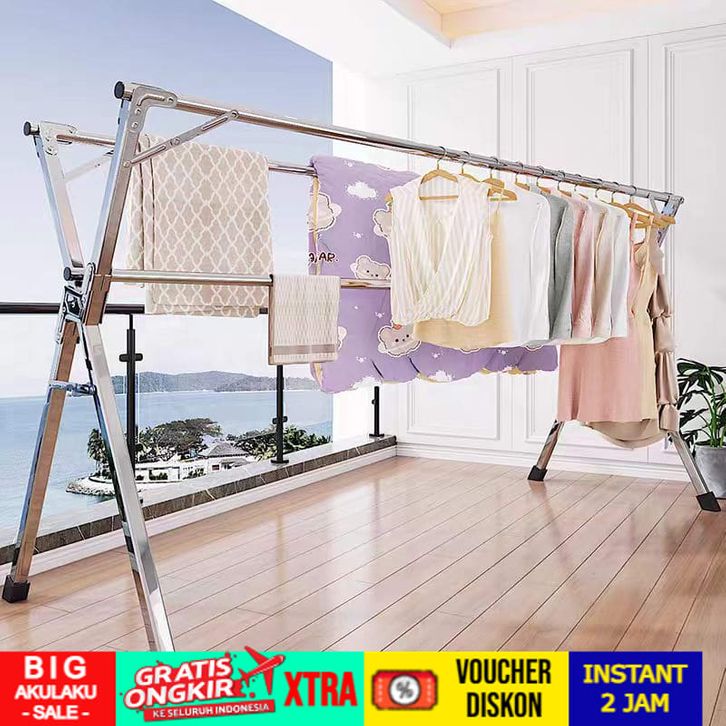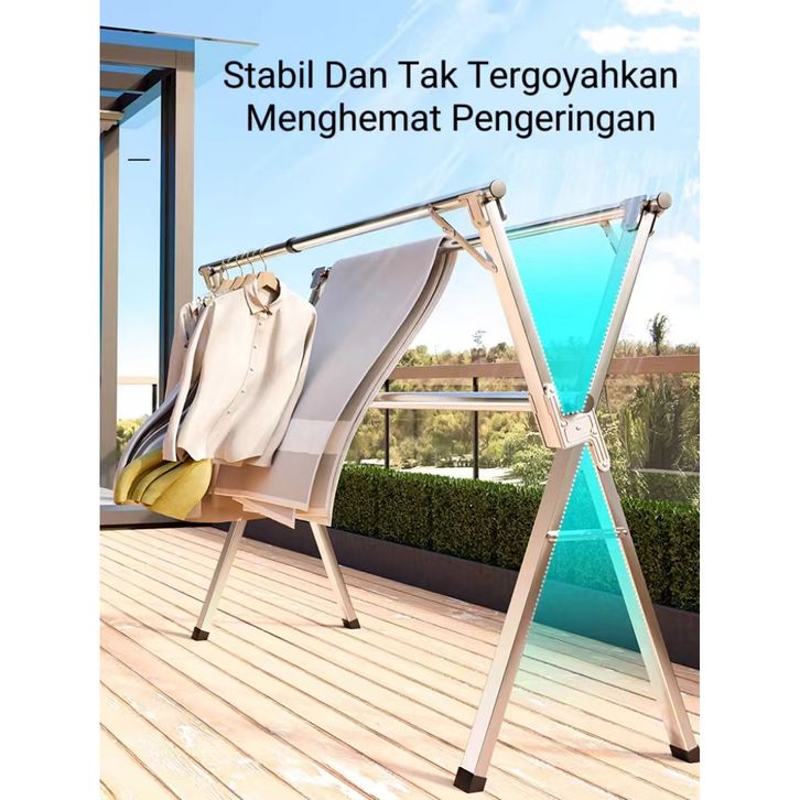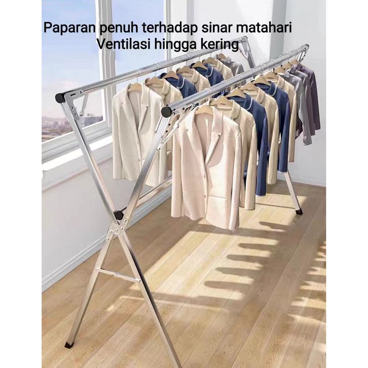 Jemuran Baju Lipat Stainless Steel Jemuran Pakaian Basah Tahan Karat Jemuran Pakaian Gantungan Baju TERLARIS