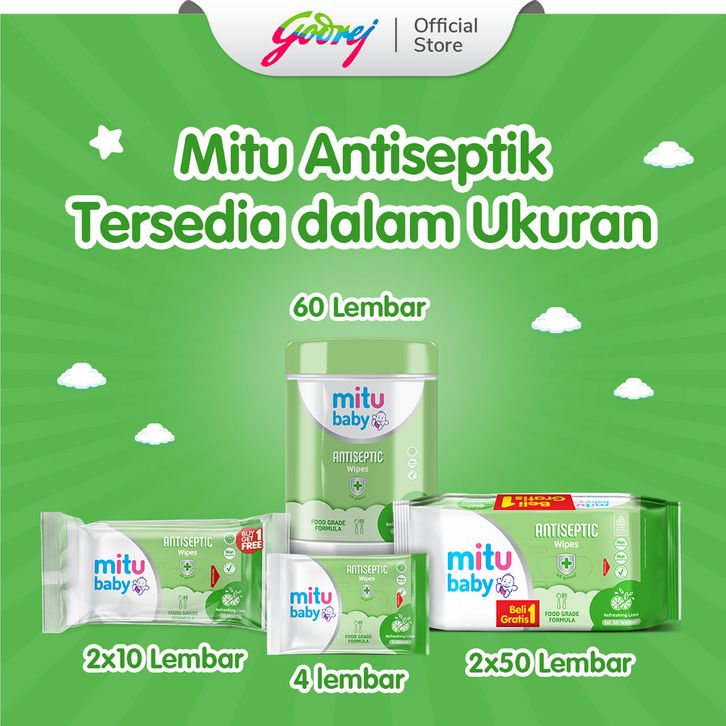 Mitu Baby Wipes Antiseptic Buy 1 Get 1 45S Xtra x3- Tisu Basah Bayi