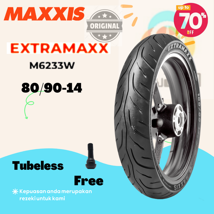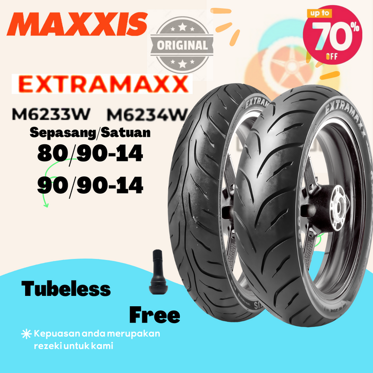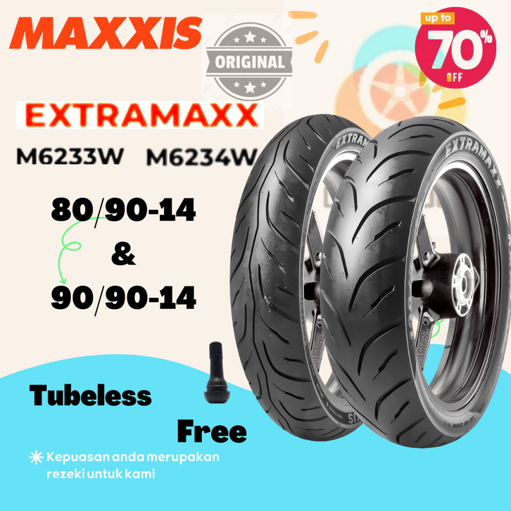 Ban Motor Ring 14 Maxxis Extramaxx Tubeless Matic 80 90 / 90 90 Beat Vario Genio Sepasang / Depan / Belakang