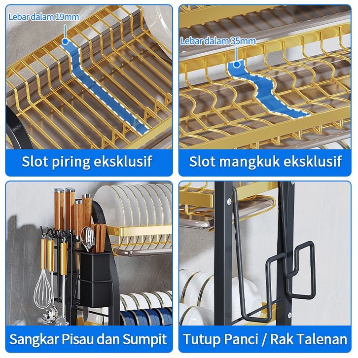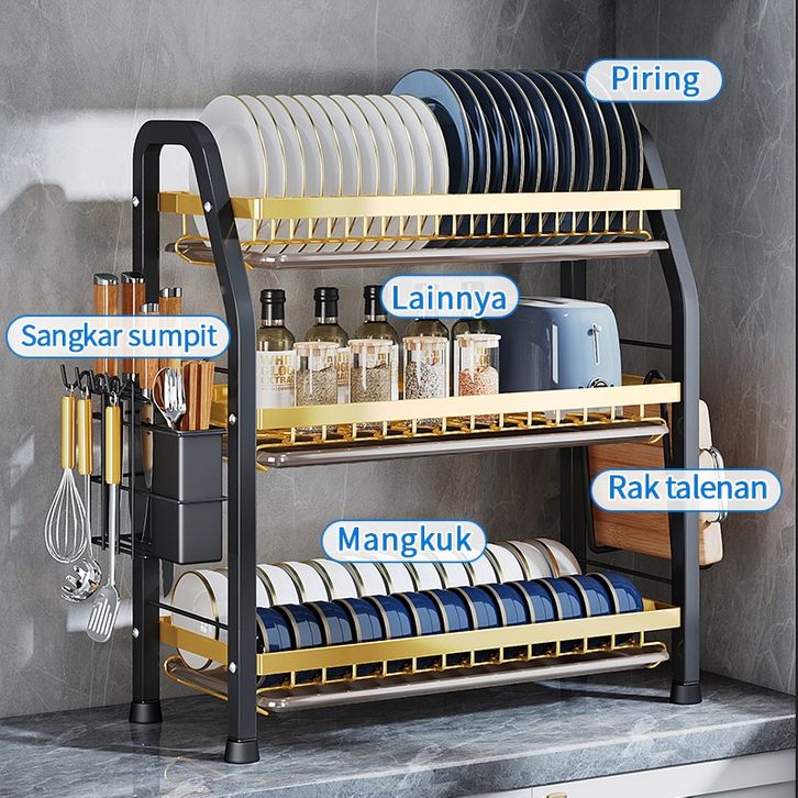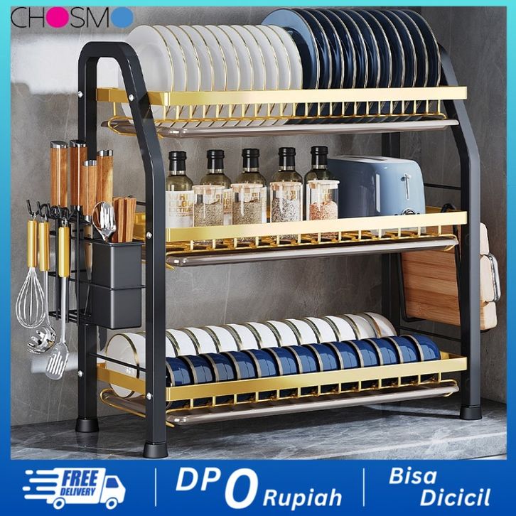 Best Seller Rak Piring Wastafel Stainless Steel Minimalis Modern Berkualitas 2/3/4/5 Susun/Tertutup/Kecil/Jumbo/Plastik