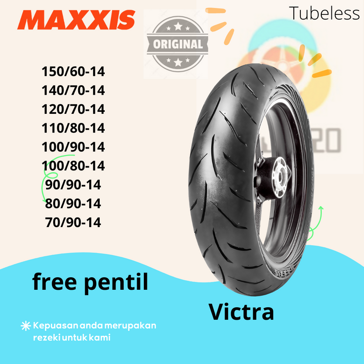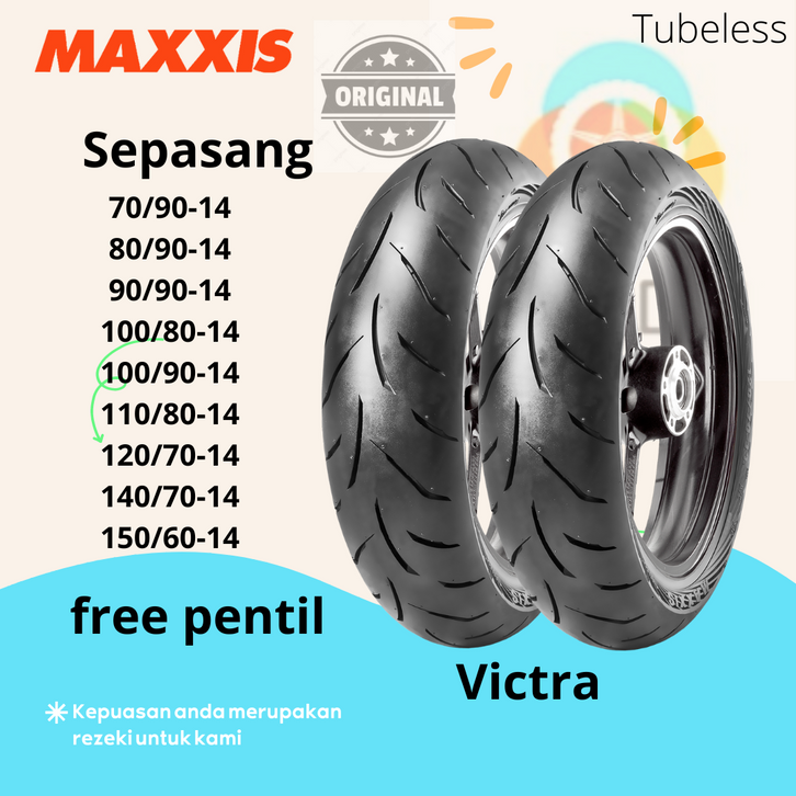 Sepasang Ban Tubeless Ring 14 Maxxis Victra Motor Matic Beat Vario Mio Genio PCX Aerox Lexi Sepasang / Depan + Belakang