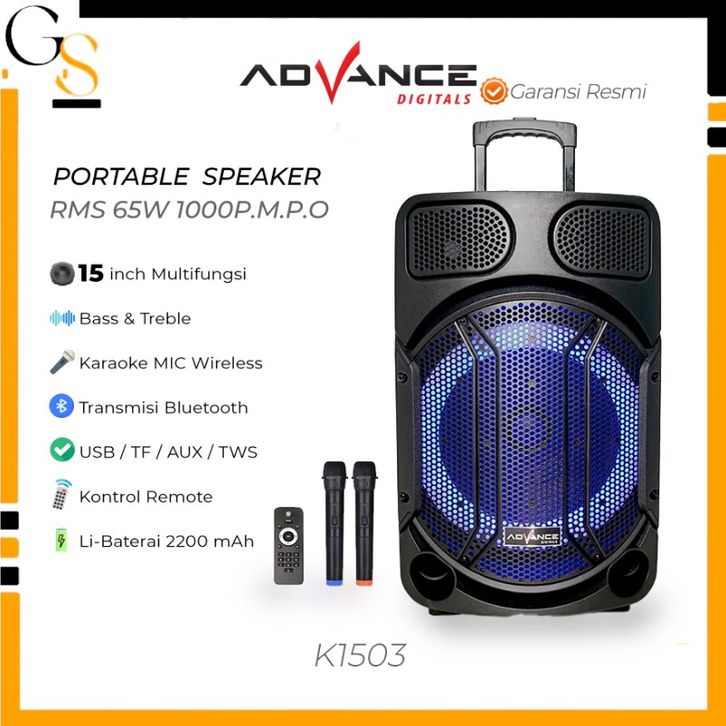 Advance K-1503 15 Inch Speaker Bluetooth super bass🔊🔊 Berkualitas Keren👍 Salon Aktif Full Bass Terbaru Terbaik Karaok