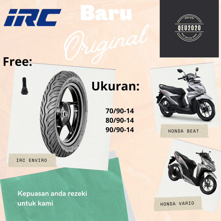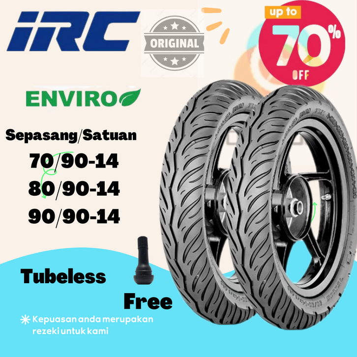 Sepasang/Satuan Ban IRC Ring 14 Enviro (70/90, 80/90, 90/90) Ban Tubeless Motor Beat, Vario, Mio