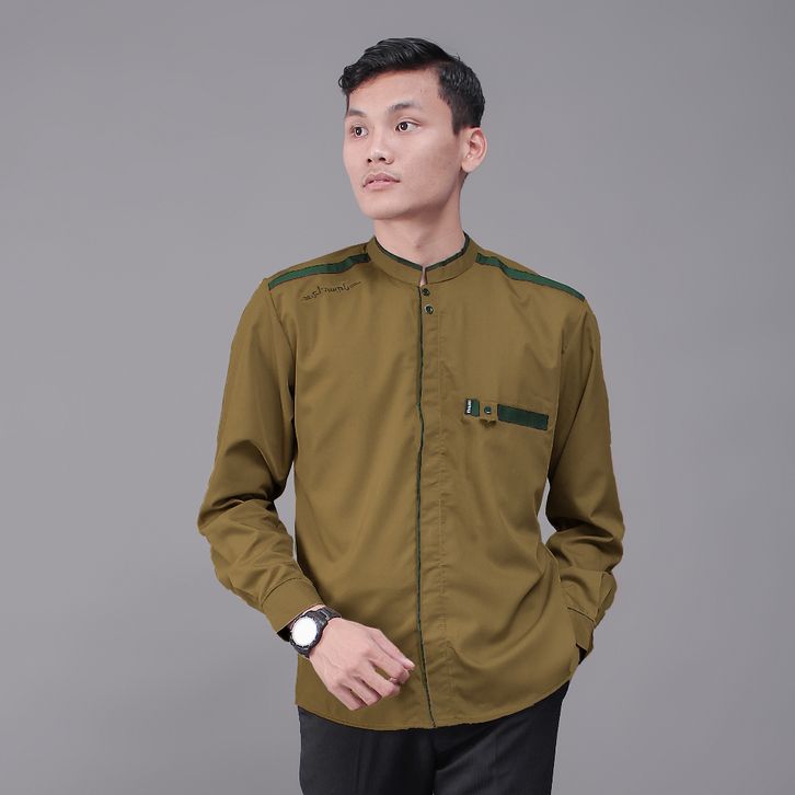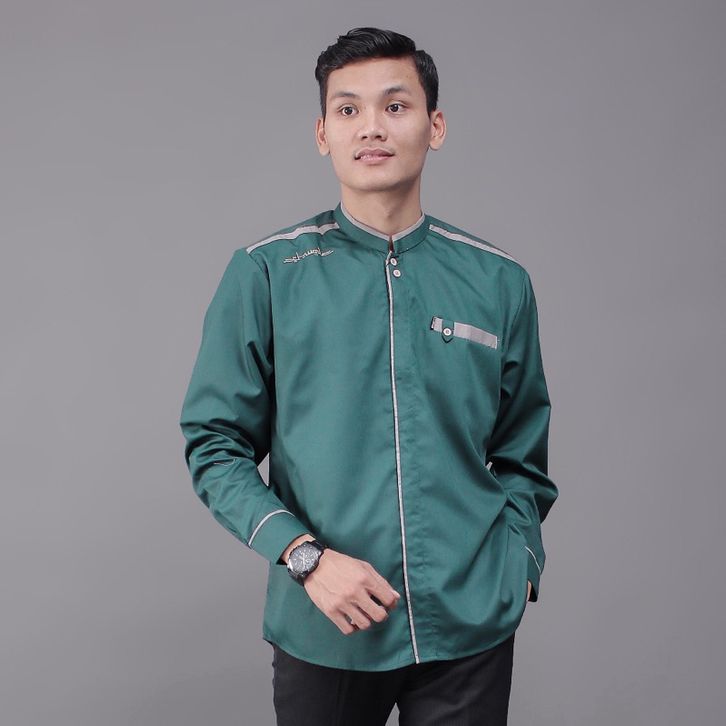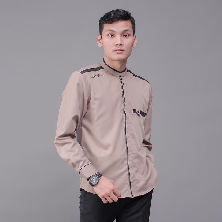 [Flash Sale] Baju Koko Pria Dewasa Lengan Panjang Kombinasi Muslim Putih Jumbo Modern Terbaru 2024 Setelan Polos