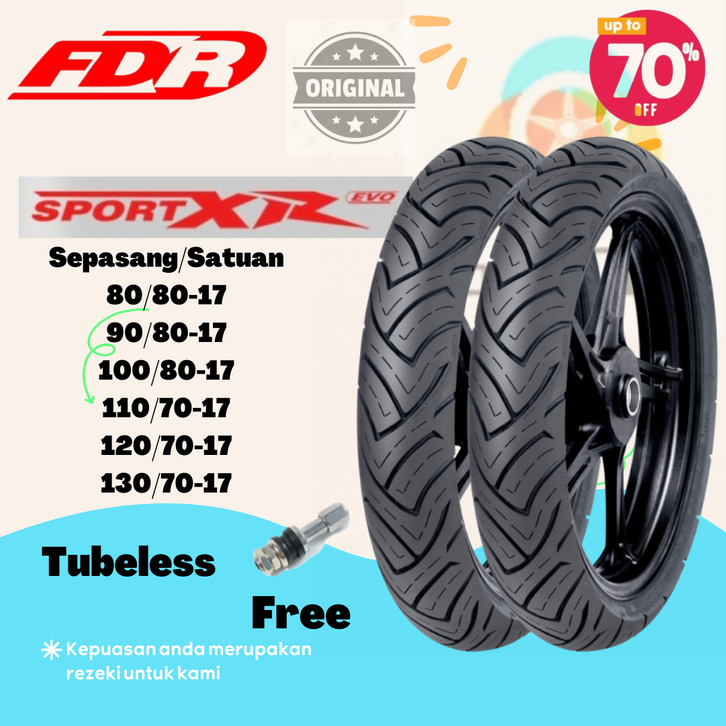 Sepasang/Satuan Ban Motor Ring 17 Fdr Xr Evo 80/80 90/80 100/80 110/70 120/70 130/70 Ban Tubeless Ring 17 FDR