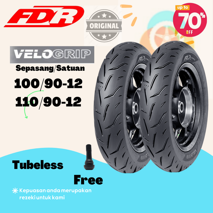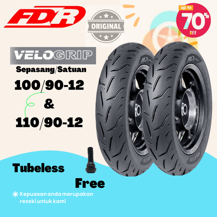 Ban Motor Ring 12 FDR Velogrip Tubeless Matic New Scoopy Freego 110 90 / 100 90 Sepasang / Depan / Belakang